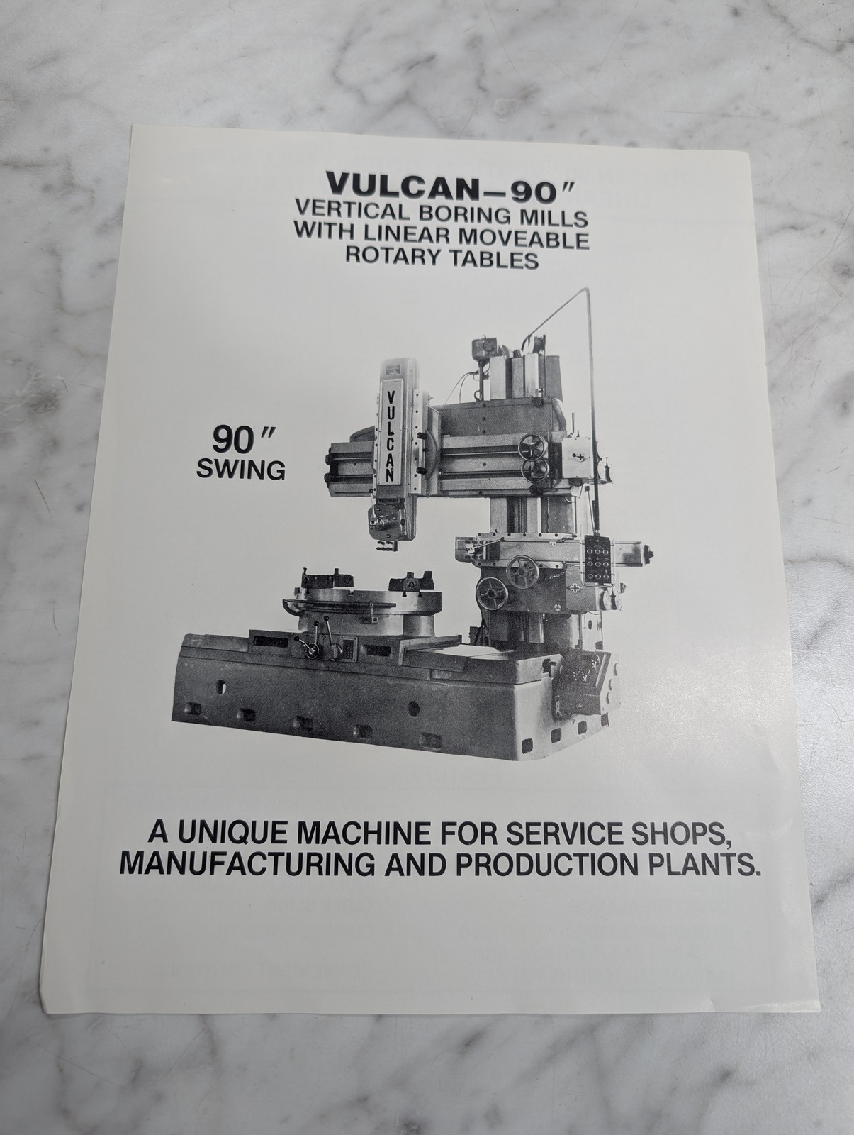 Vulcan 90” Vertical Boring Mill Sales Information Literature Brochure Specs