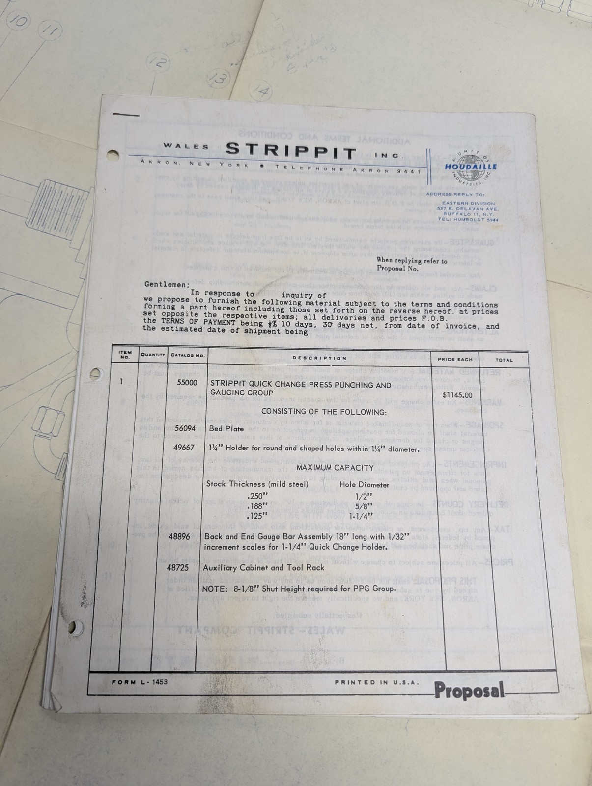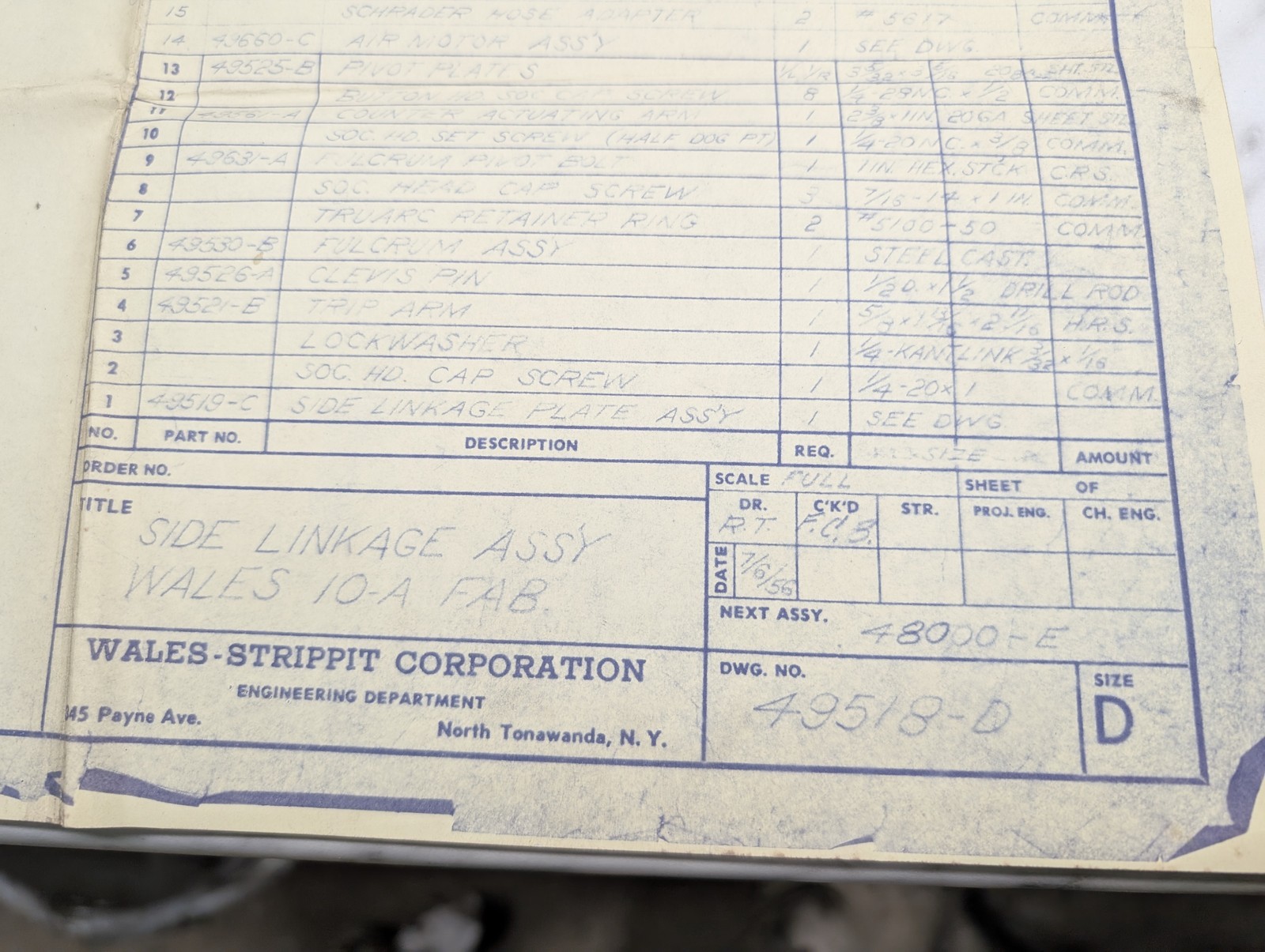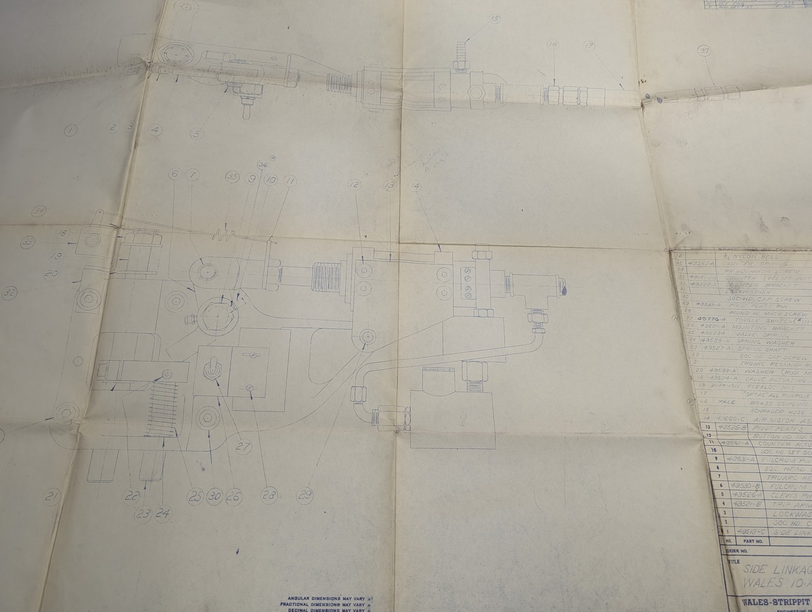Wales Strippit Side Linkage Assembly 10-A Drawing Blue Print Diagram Information