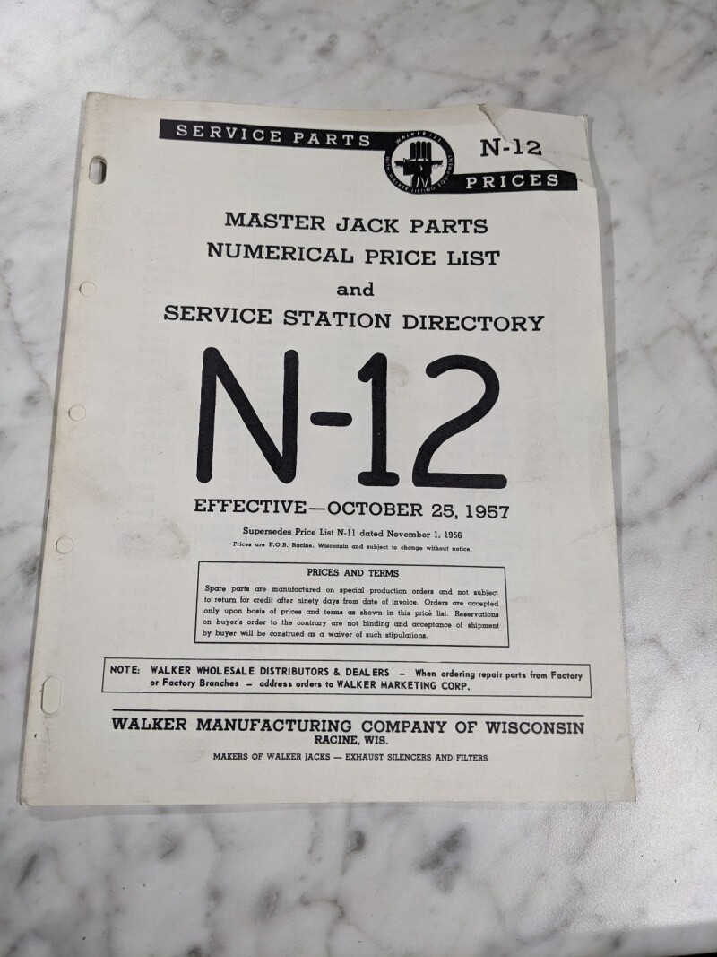 Walker Manufacturing Service Parts List Prices N-12 1957 Master Jack Index