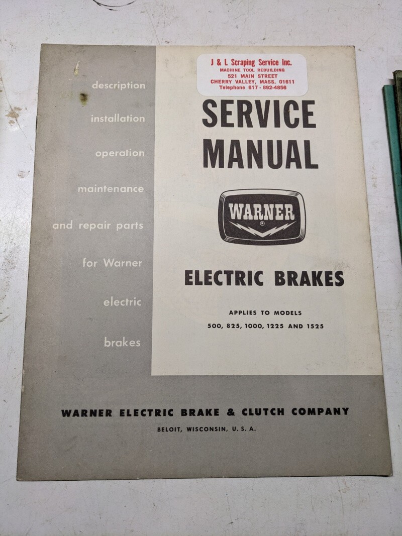 Warner Service Manual Parts List Book Electric Brakes 500 825 1000 1225 1525