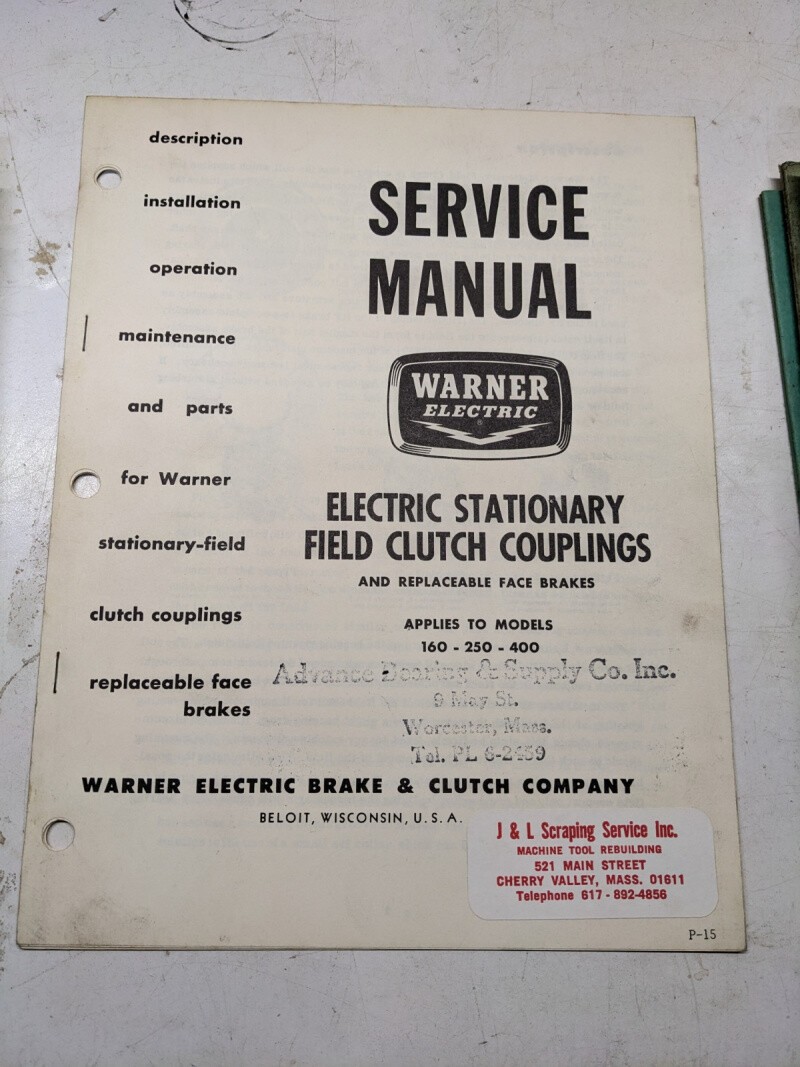 Warner Service Manual Parts List Book Electric Stationary Clutch 160 250 400