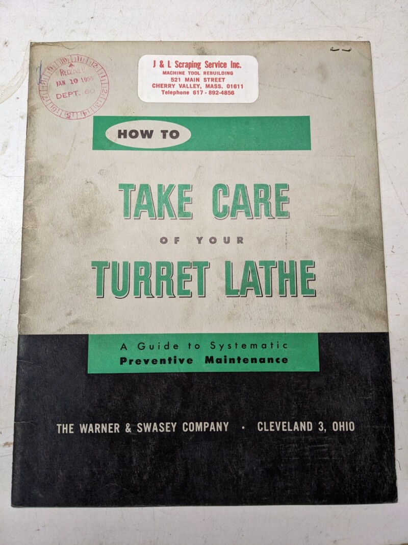 Warner Swasey Lathe Machine How To Take Care Of Your Maintenance Manual 1953