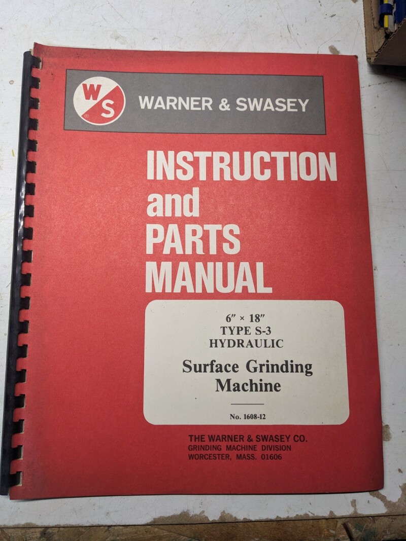 Warner Swasey Operator Service Manual Parts List 6X18” Type S-3 Surface Grinders