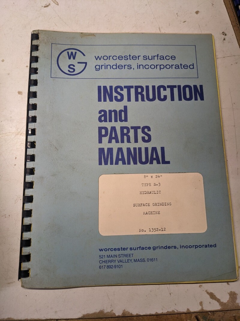 Warner Swasey Operator Service Manual Parts List 8”X24 Type S-3 Surface Grinder