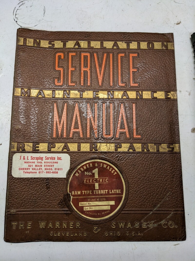 Warner & Swasey Parts List Book Manual Catalog Turret Lathe #1 M-1270