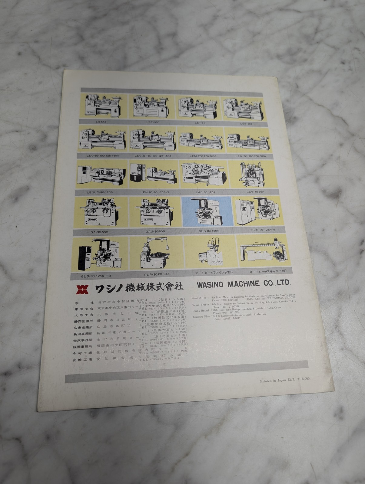 Wasino Gls 80A Optical Projection Profile Grinding Machine Model Sales Brochure
