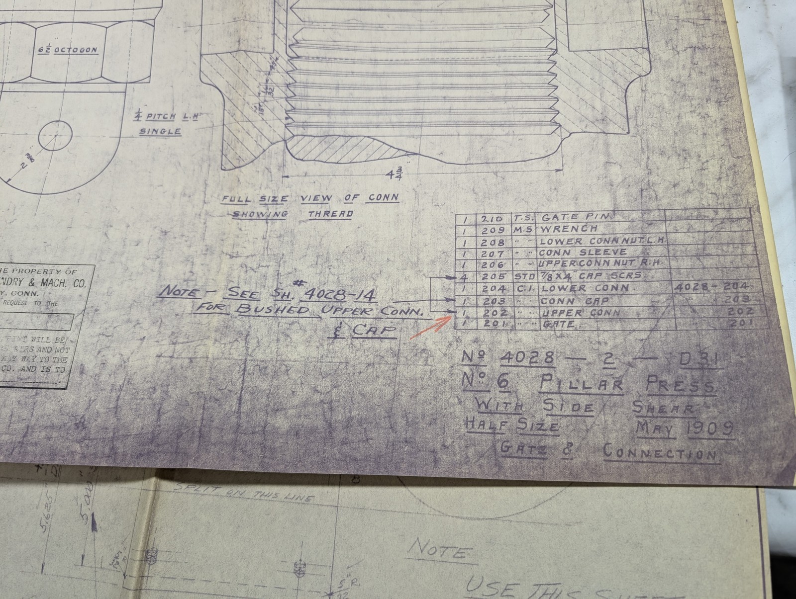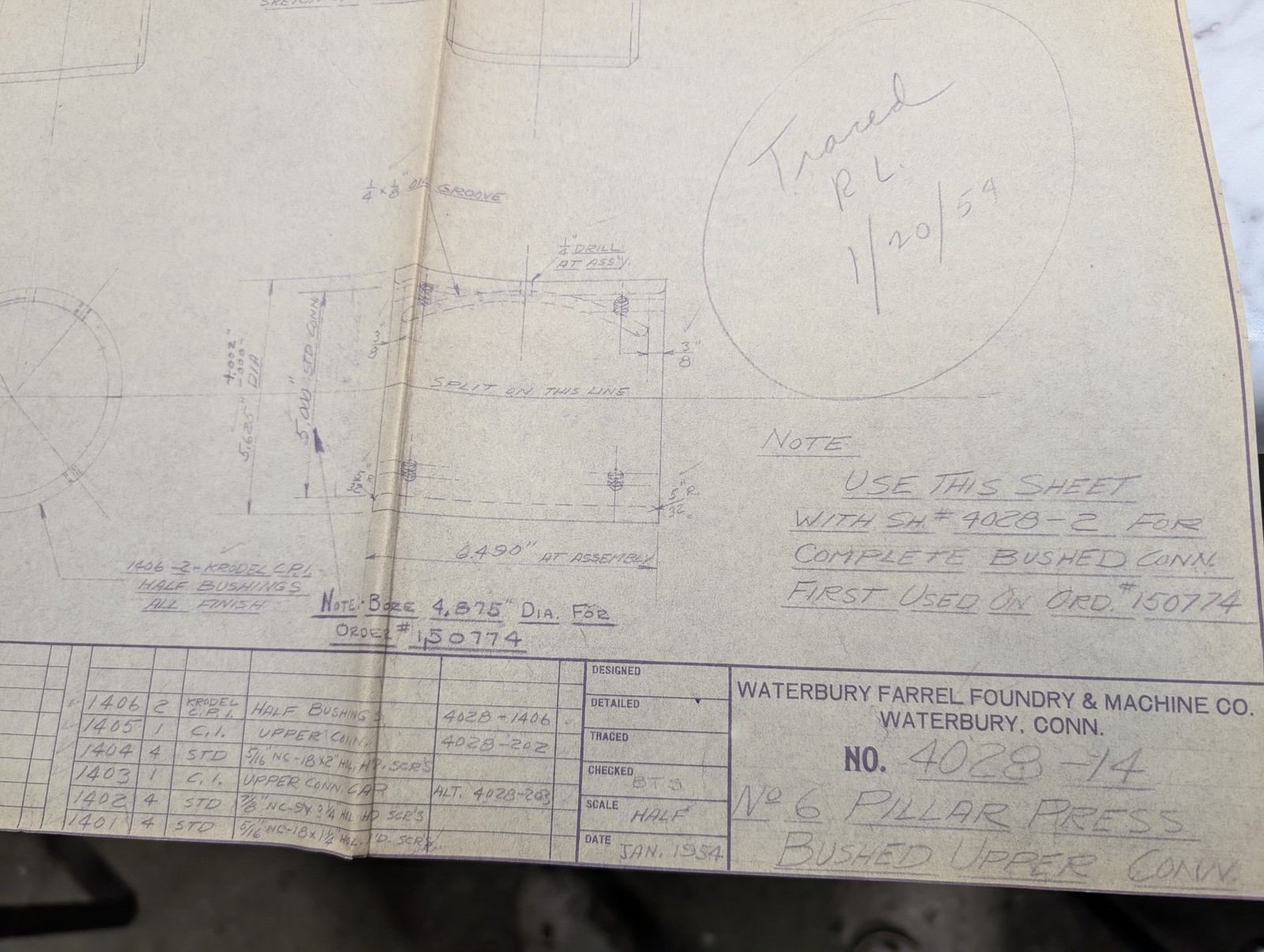 Waterbury Farrel Foundry Machine Tool #6 Pillar Press Drawings Blue Prints