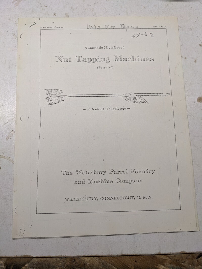 Waterbury Farrel Nut Tapping Machines Sales Brochure Catalog Features Specs Copy