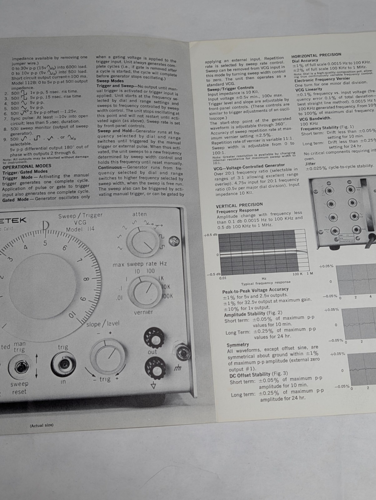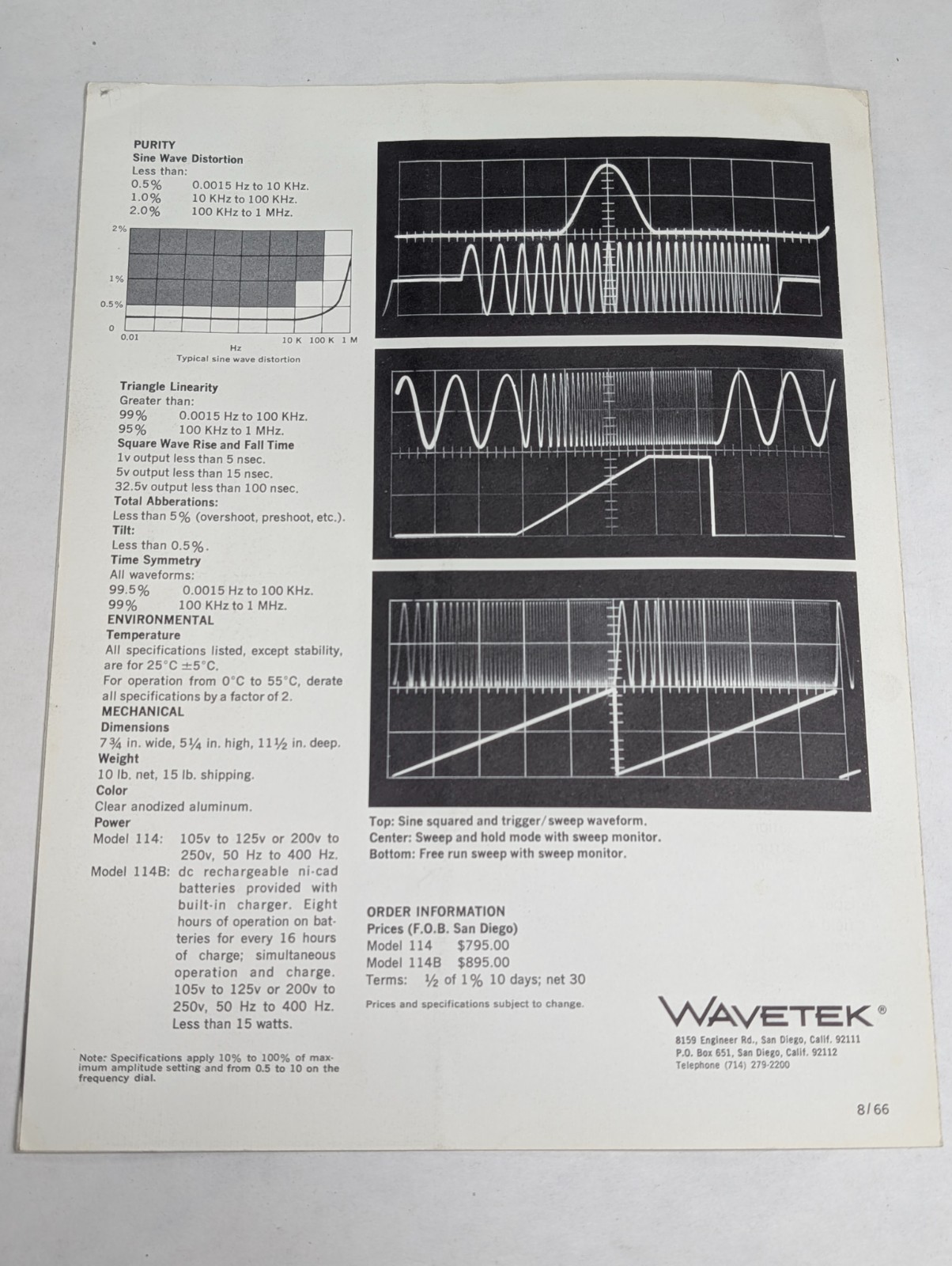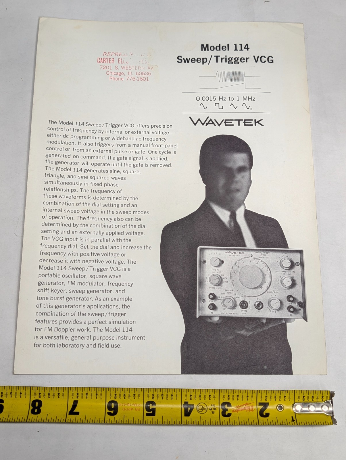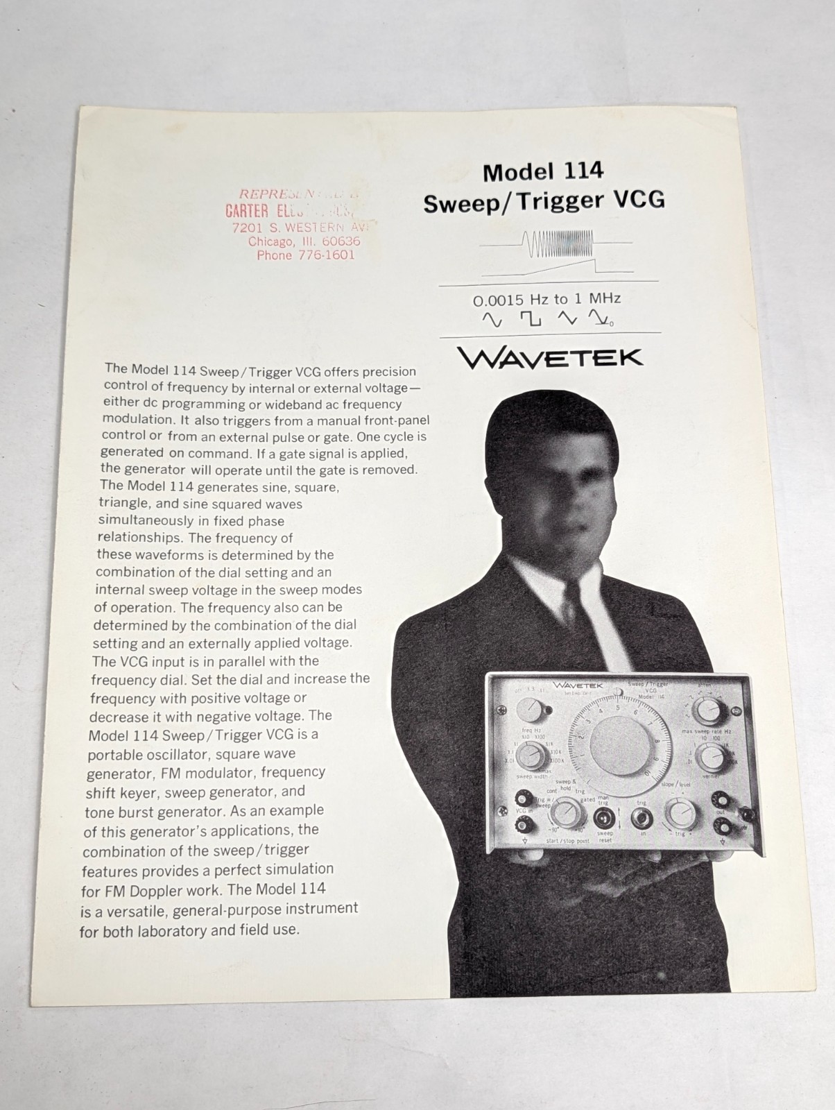 Wavetek Model 114 Vcg Voltage Controlled Generator Sales Brochure Literature