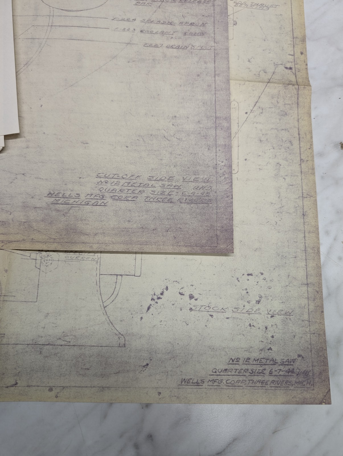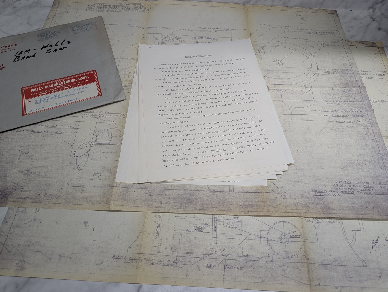Wells Machine Tool #12 Saw Engineering Drawings Prints Diagrams Information