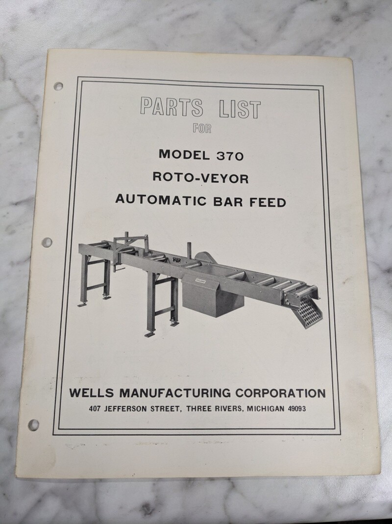 Wells Manufacturing Parts List Book Manual Model 370 Roto-Veyor Auto Bar Feed