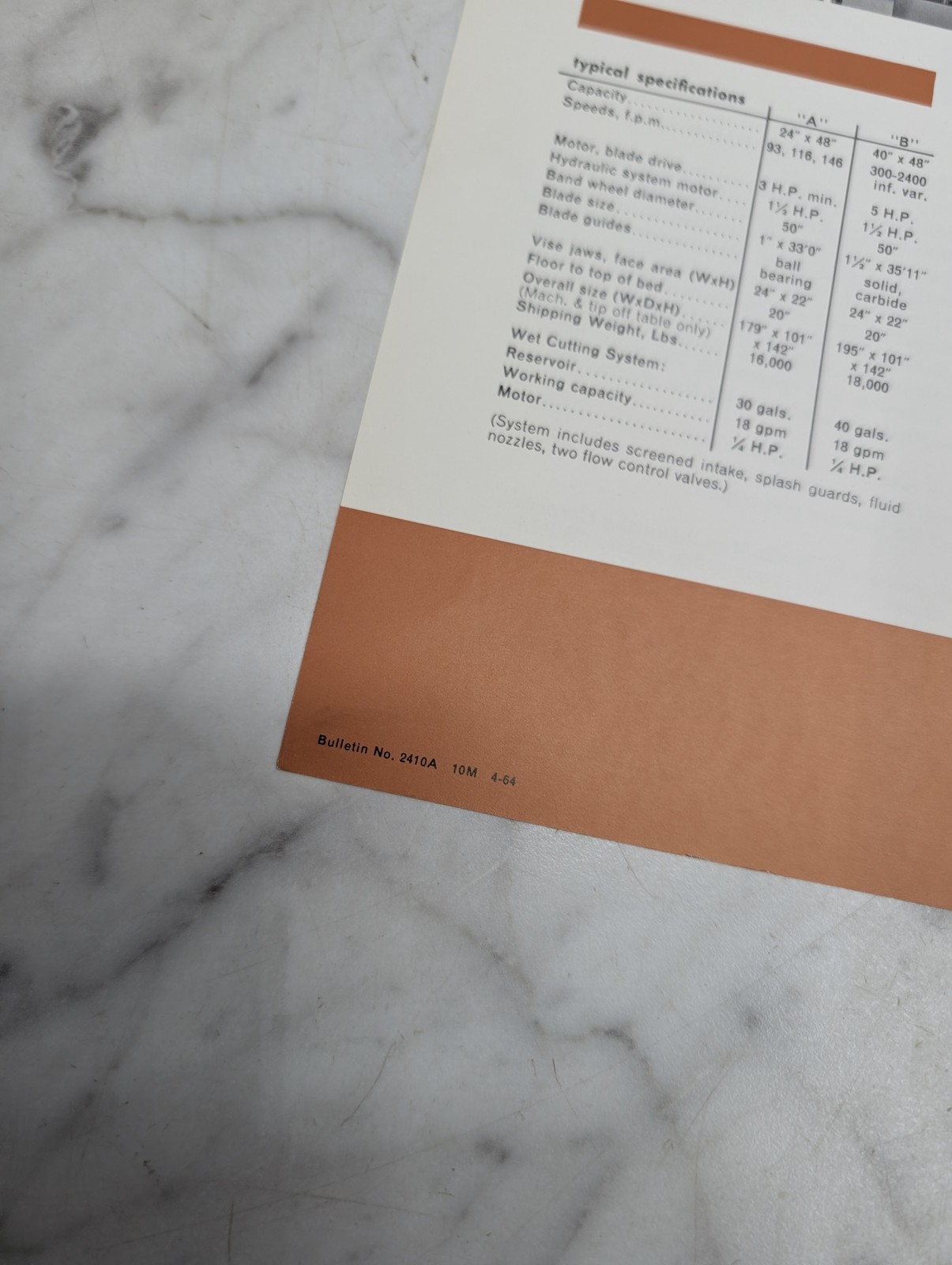 Wells Wellsaw Model 2400 Metal Cutting Band Saws New Series Sales Sheet