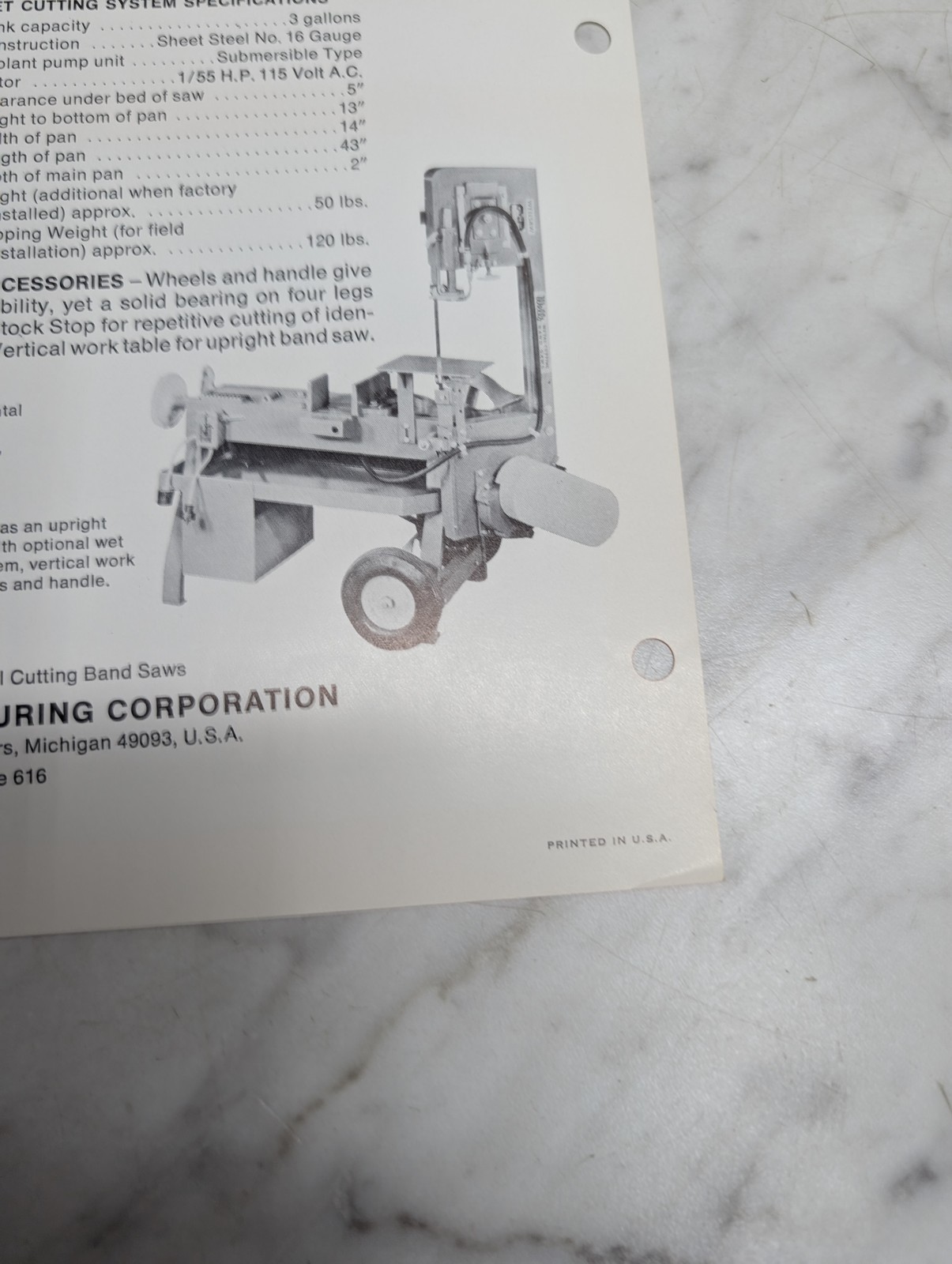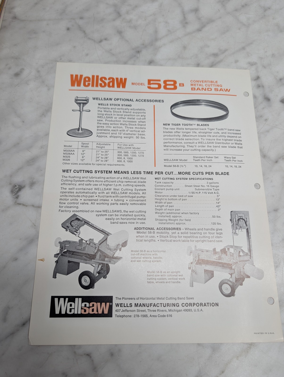 Wellsaw 58 B Convertible Metal Cutting Band Saw Model Sales Sheet Brochure