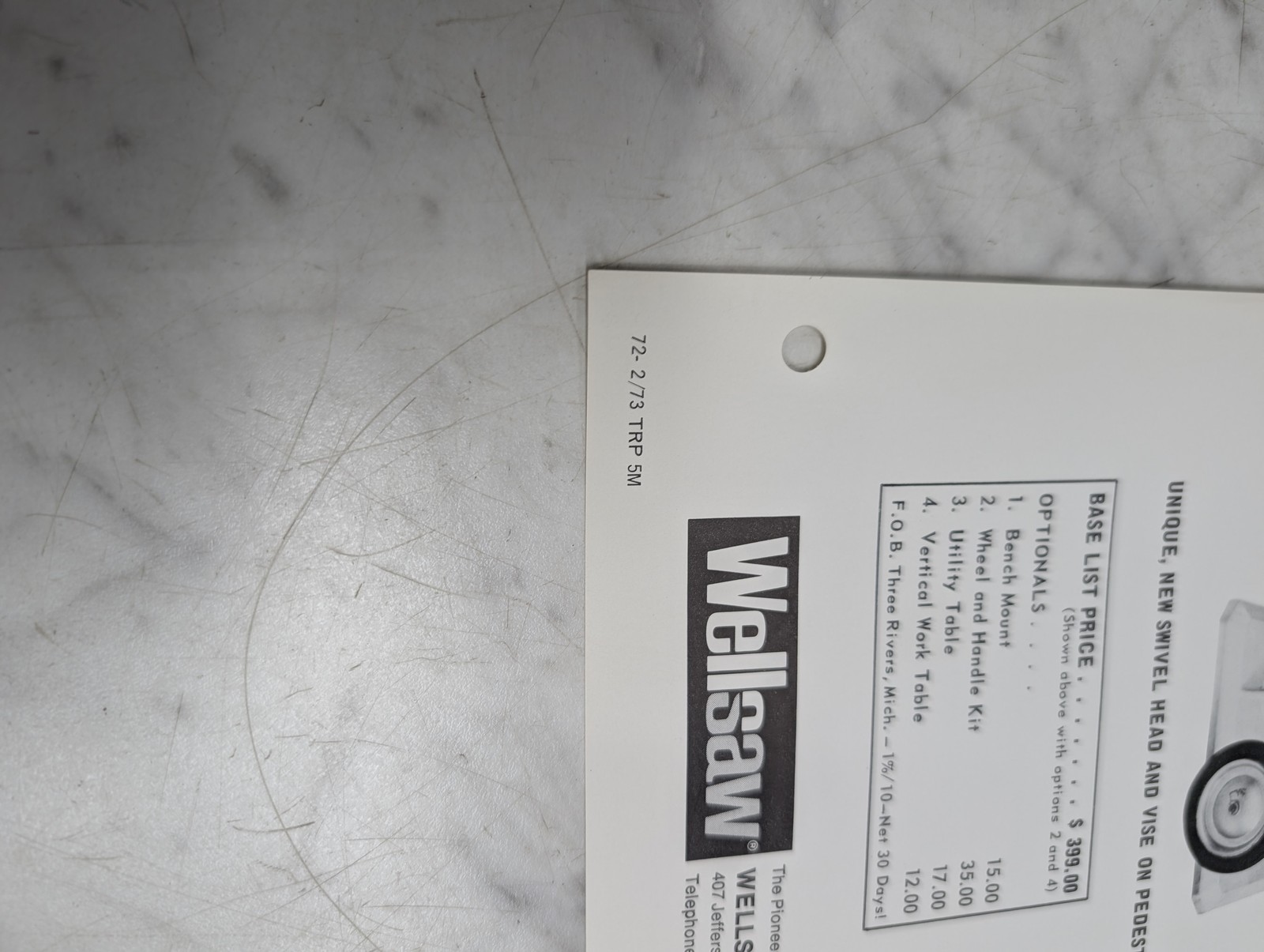 Wellsaw Model No 72 New Band Saw Wells Manufacturing 2 7 3 Sales Sheet