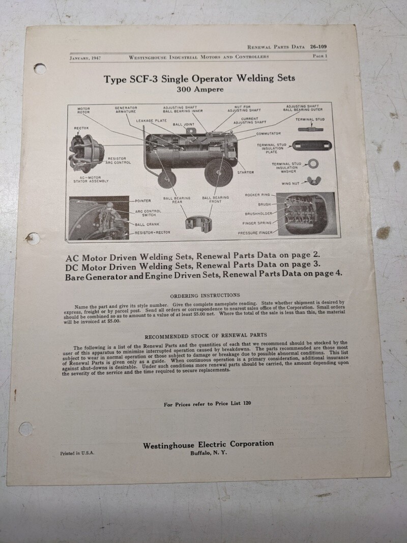 Westinghouse Type Scf-3 Welding Sets 300 Amp Sales Brochure Catalog 1947