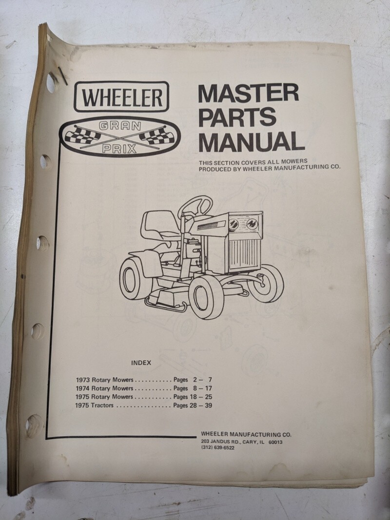 Wheeler Parts Catalog List Manual Book Master Gran Prix 1973-75 Mower Tractors