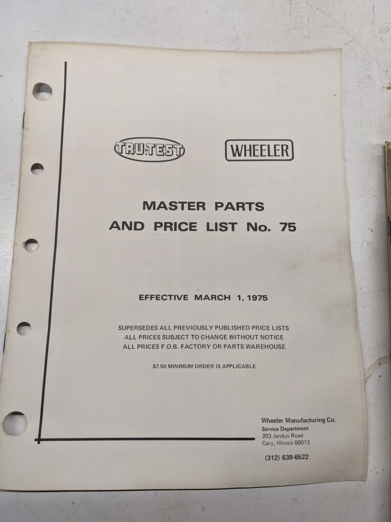 Wheeler Tru Test Master Parts & Price List No 75 1975