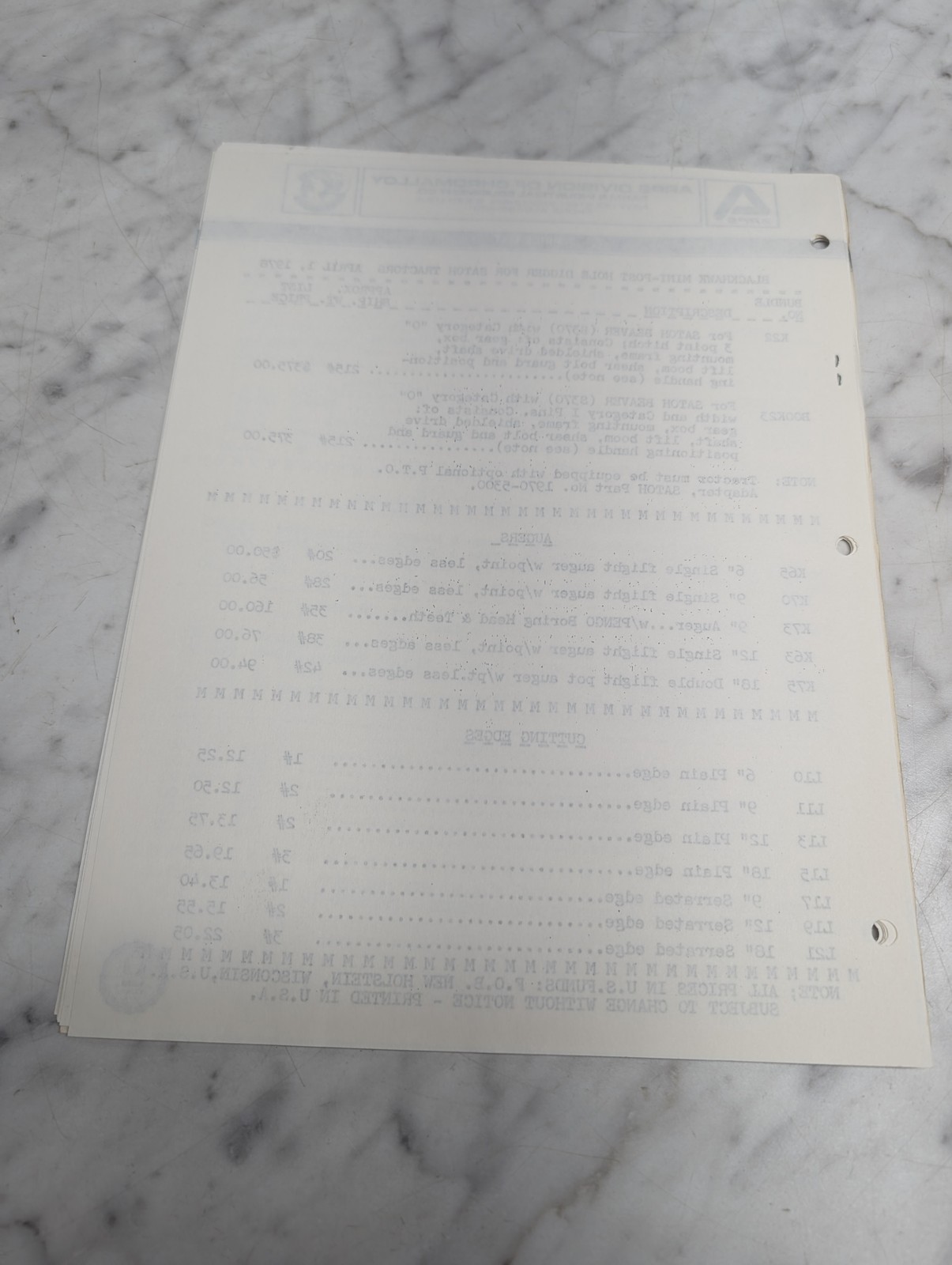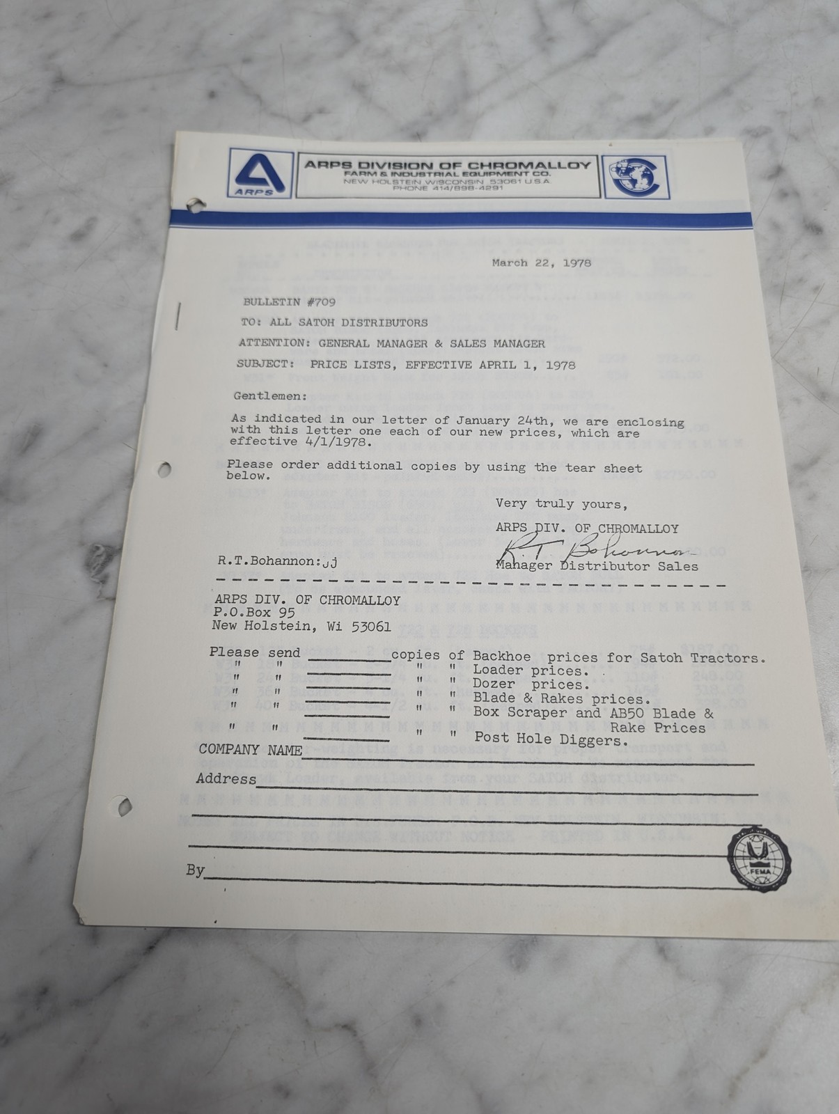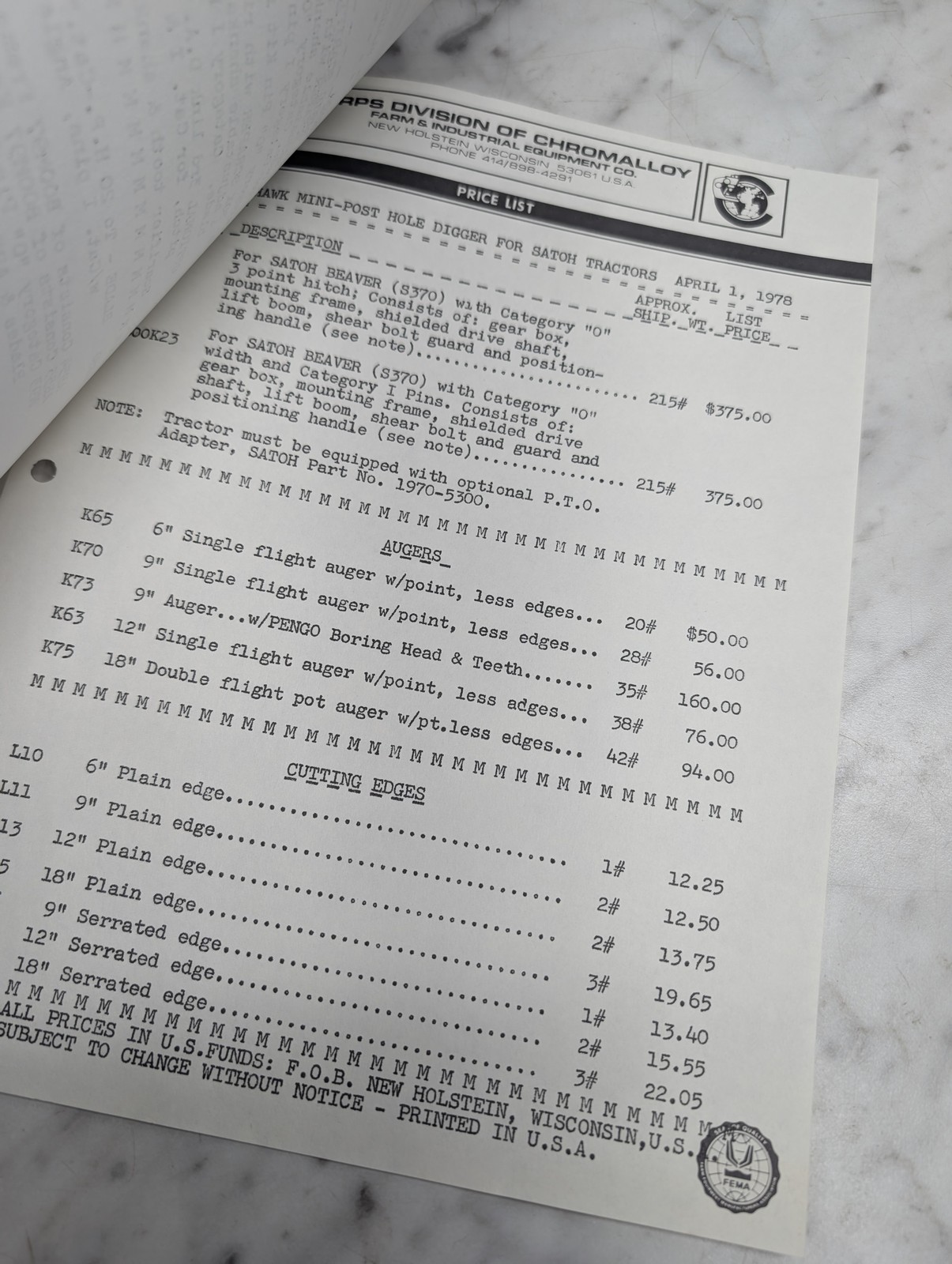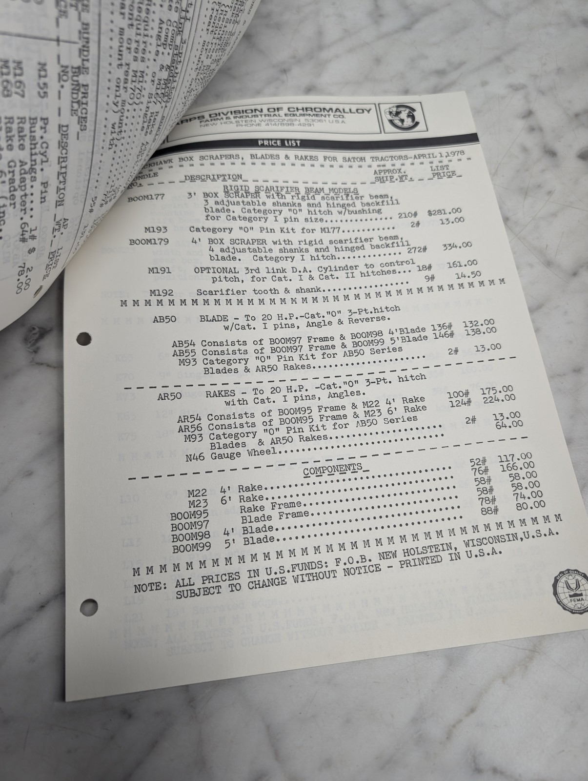 White Arps Blackhawk Backhoes Satoh Tractors Price List April 1 1978 Book