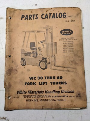 White Parts List Book Catalog Wc 30 40 50 60 Fork Lift Truck 1972 R-2165A