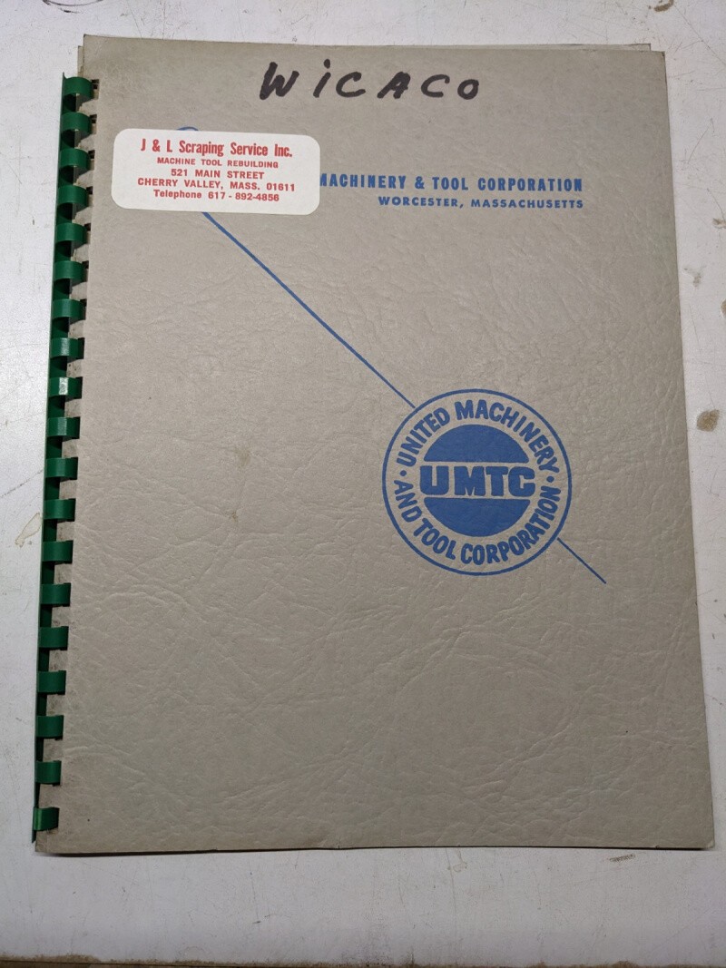 Wicaco Machine Tool Operation Manual Parts List Book Oil Groover