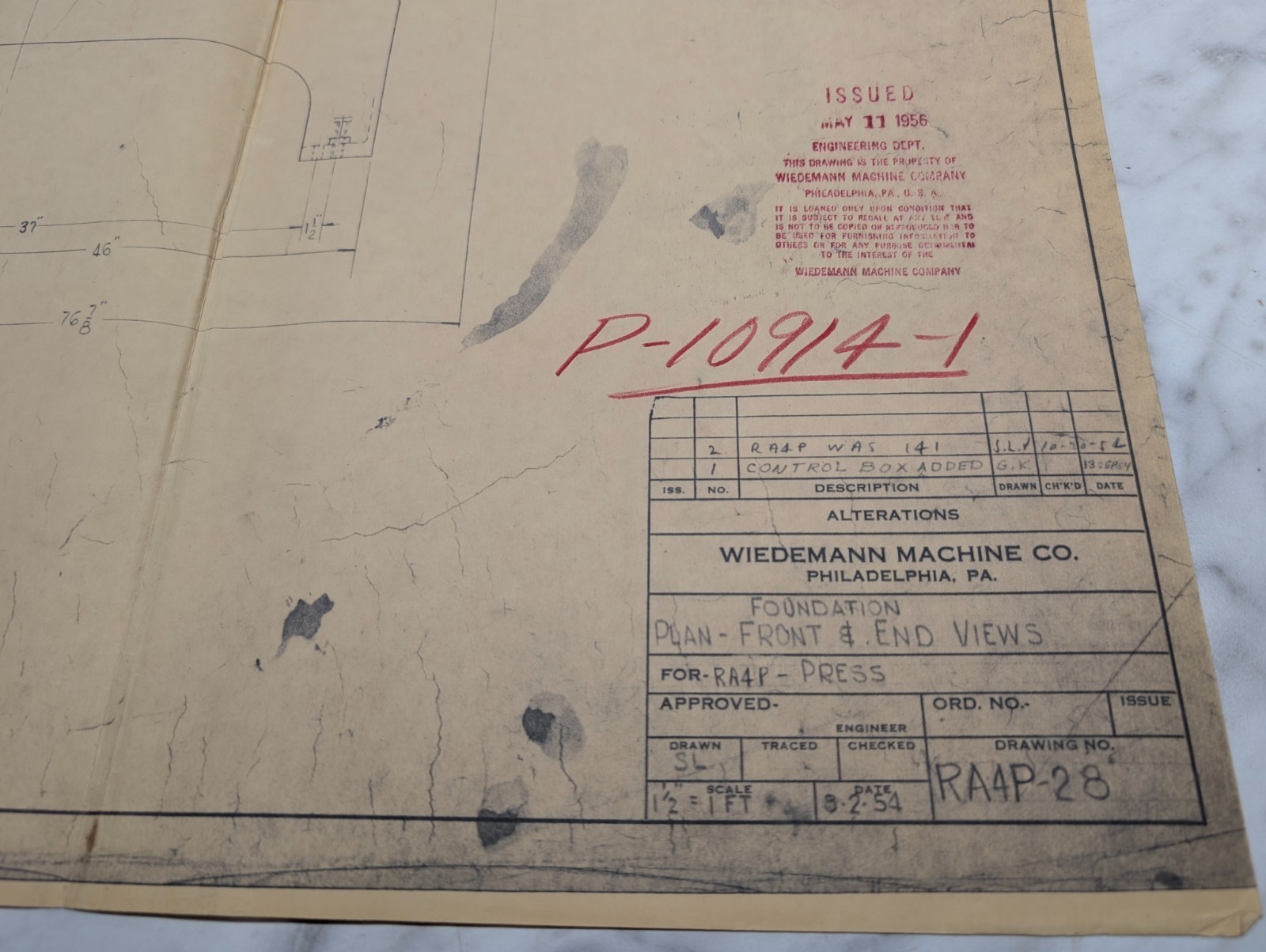 Wiedemann Ra4P Press Machine Tool Foundation Drawing Diagram Blue Print