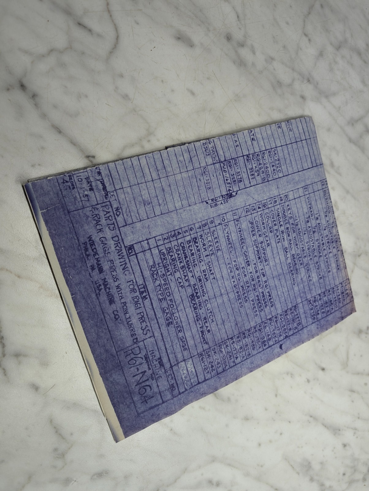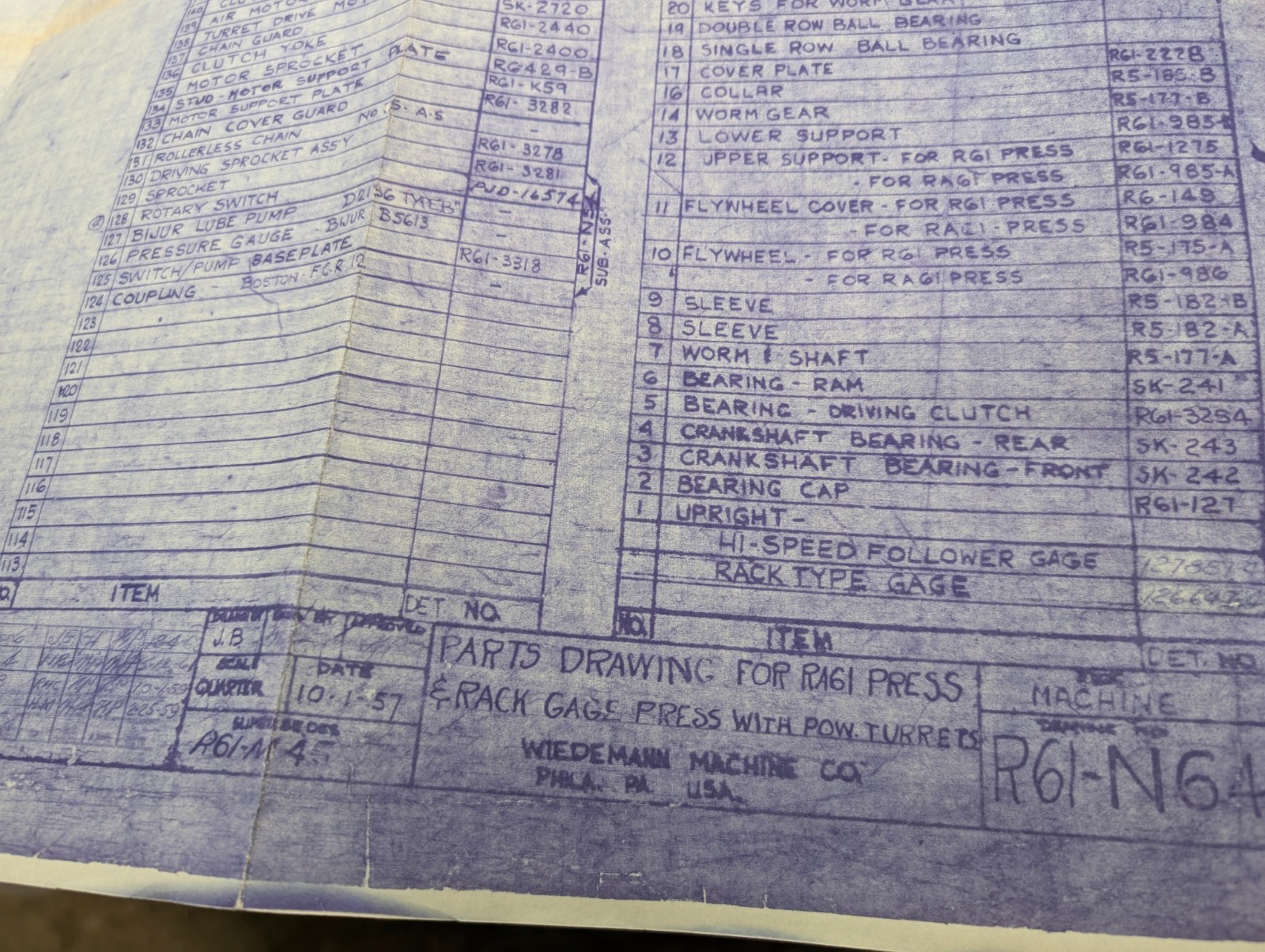 Wiedemann Ra61 Press Machine Tool Parts List Drawing Diagram Blue Print