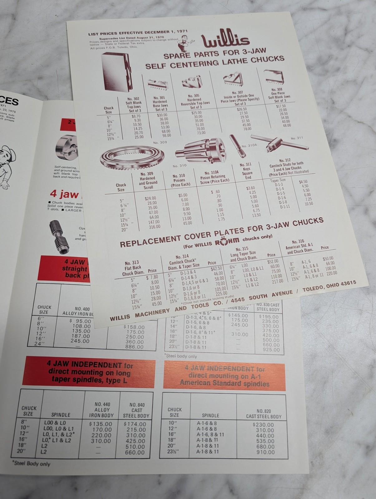 Willis 2 3 And 4 Jaw Precision Lathe Chucks Self Centering Sales Brochure