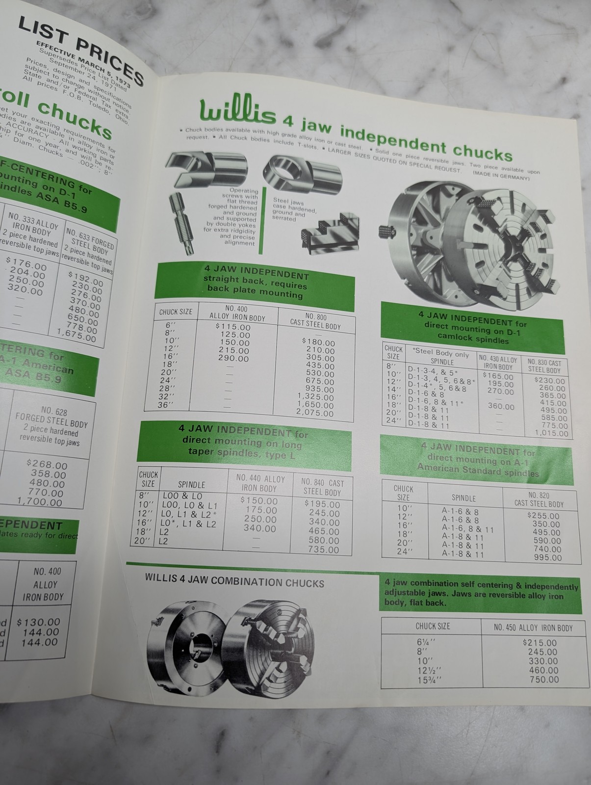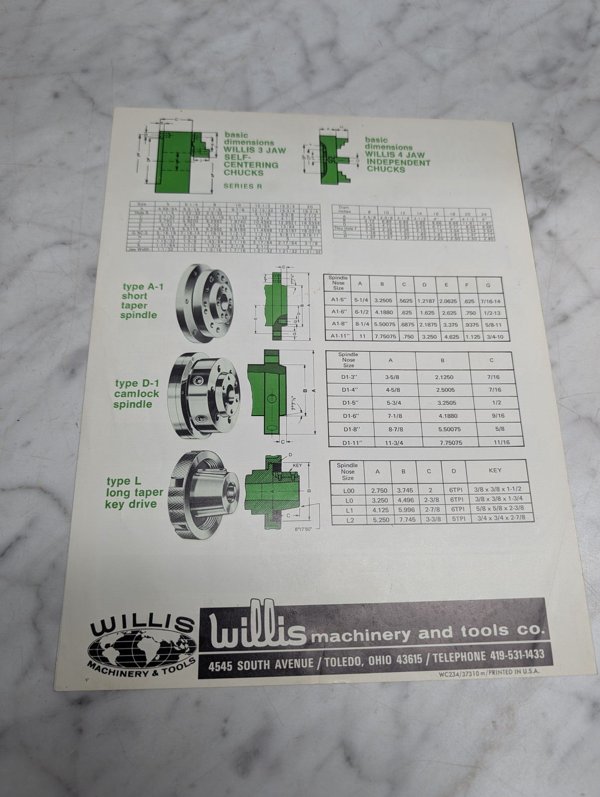 Willis 2 3 And 4 Jaw Precision Lathe Chucks Self Centering Sales Brochure