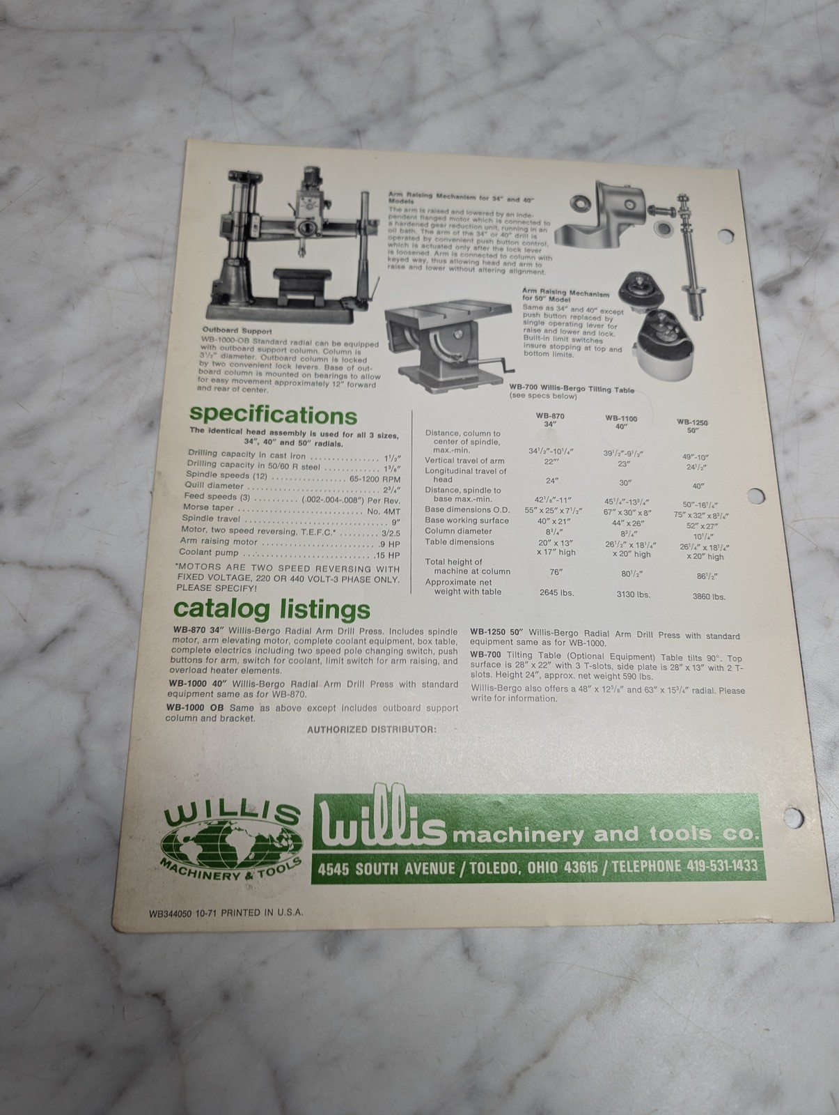 Willis Bergo 34 40 50 Radial Drilling Machines Wb 1000 Press Sales Brochure