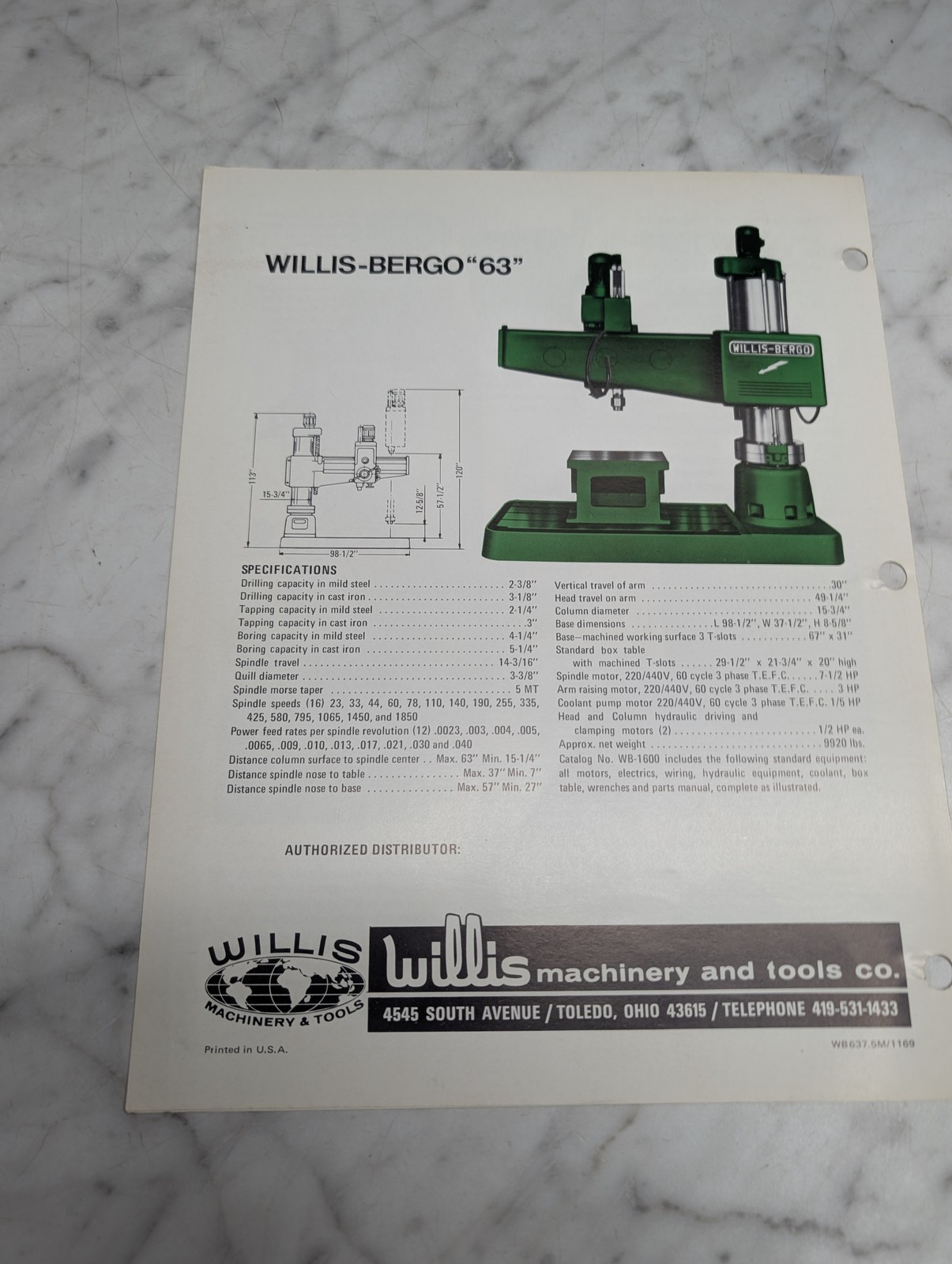 Willis Bergo 63 Supersize Radial Drilling Machine Sales Brochure Literature