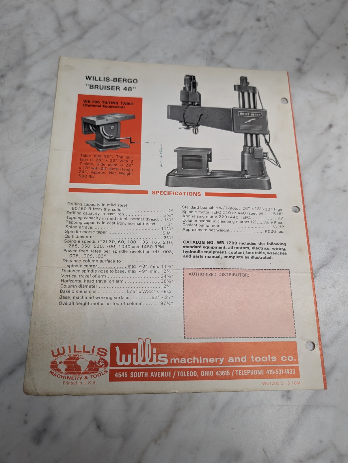 Willis Bergo Radial Drilling Machine 12-5 8 X 48 Sales Brochure