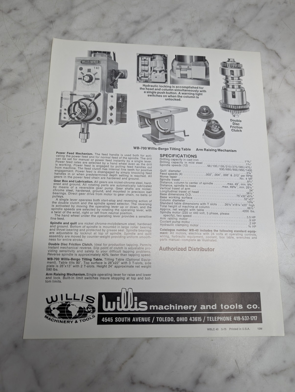 Willis Bergo Wb40 Little Caesar 10 5 8 X 49 Radial Drilling Machine Brochure