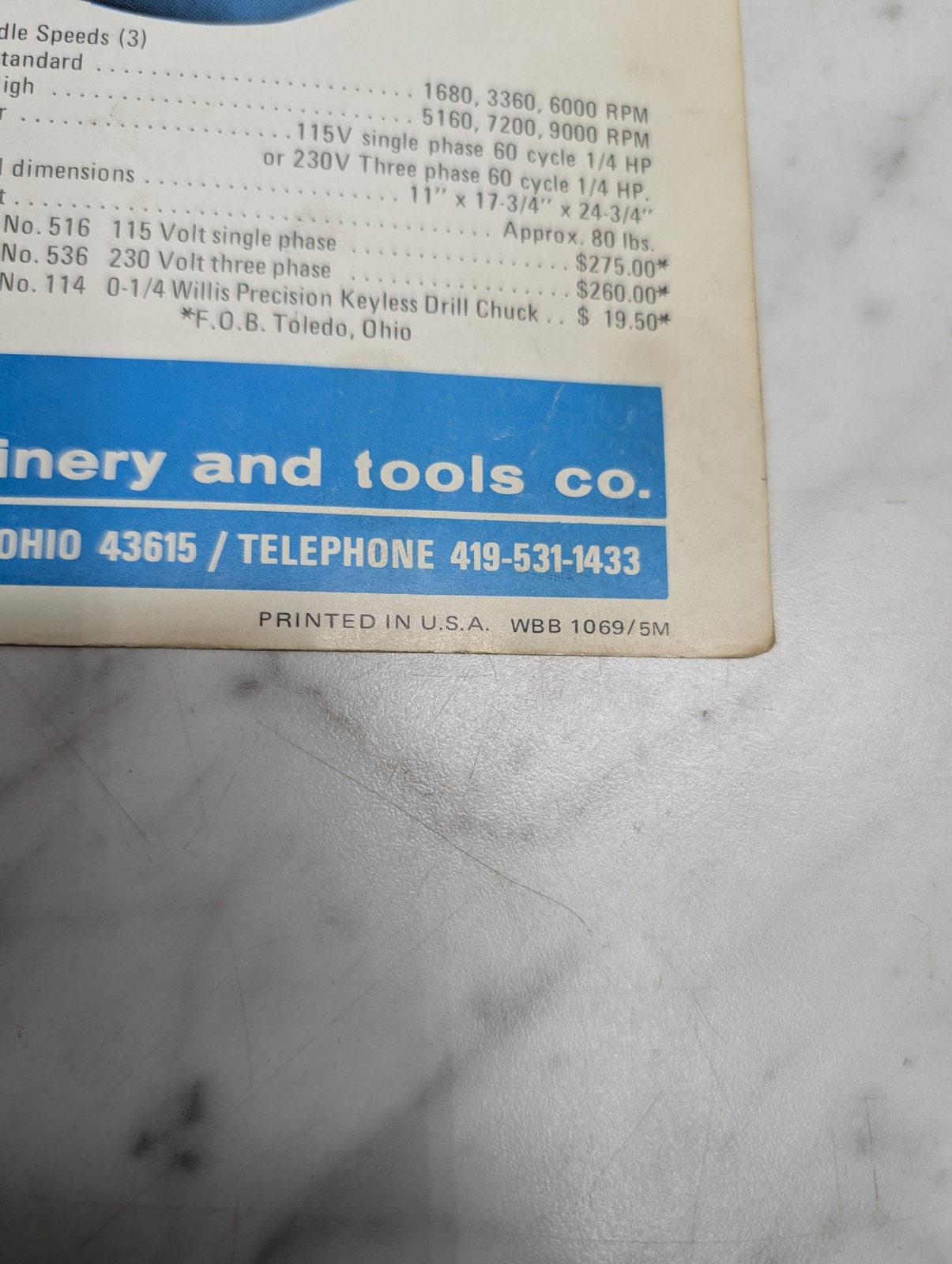 Willis Bluebird High Speed Precision Drill Press Model No 516 536 114 Brochure