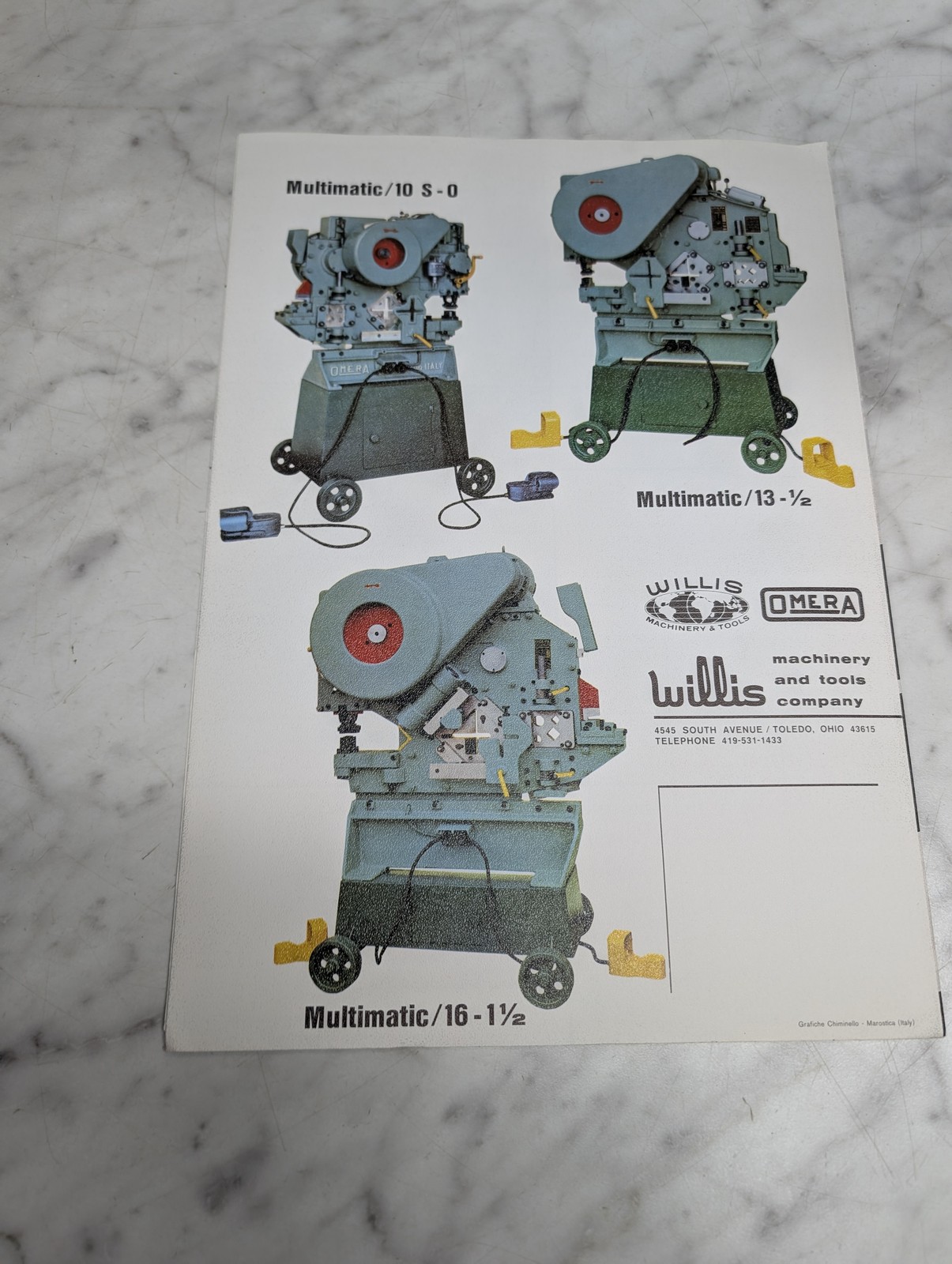 Willis Omera Multimatic 20 2 1/2 Universal Punching Shearing Machines Brochure