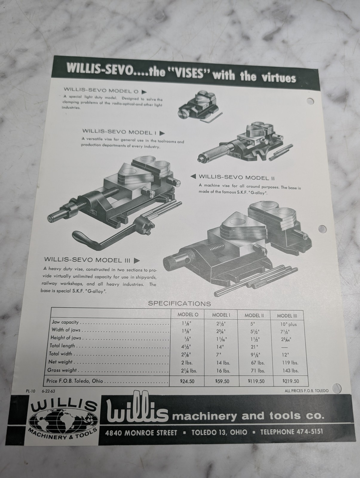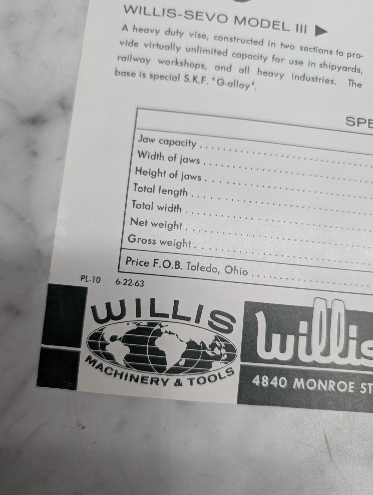 Willis Sevo Multiple Jaw Universal Screw Vise Sales Brochure Catalog Literature