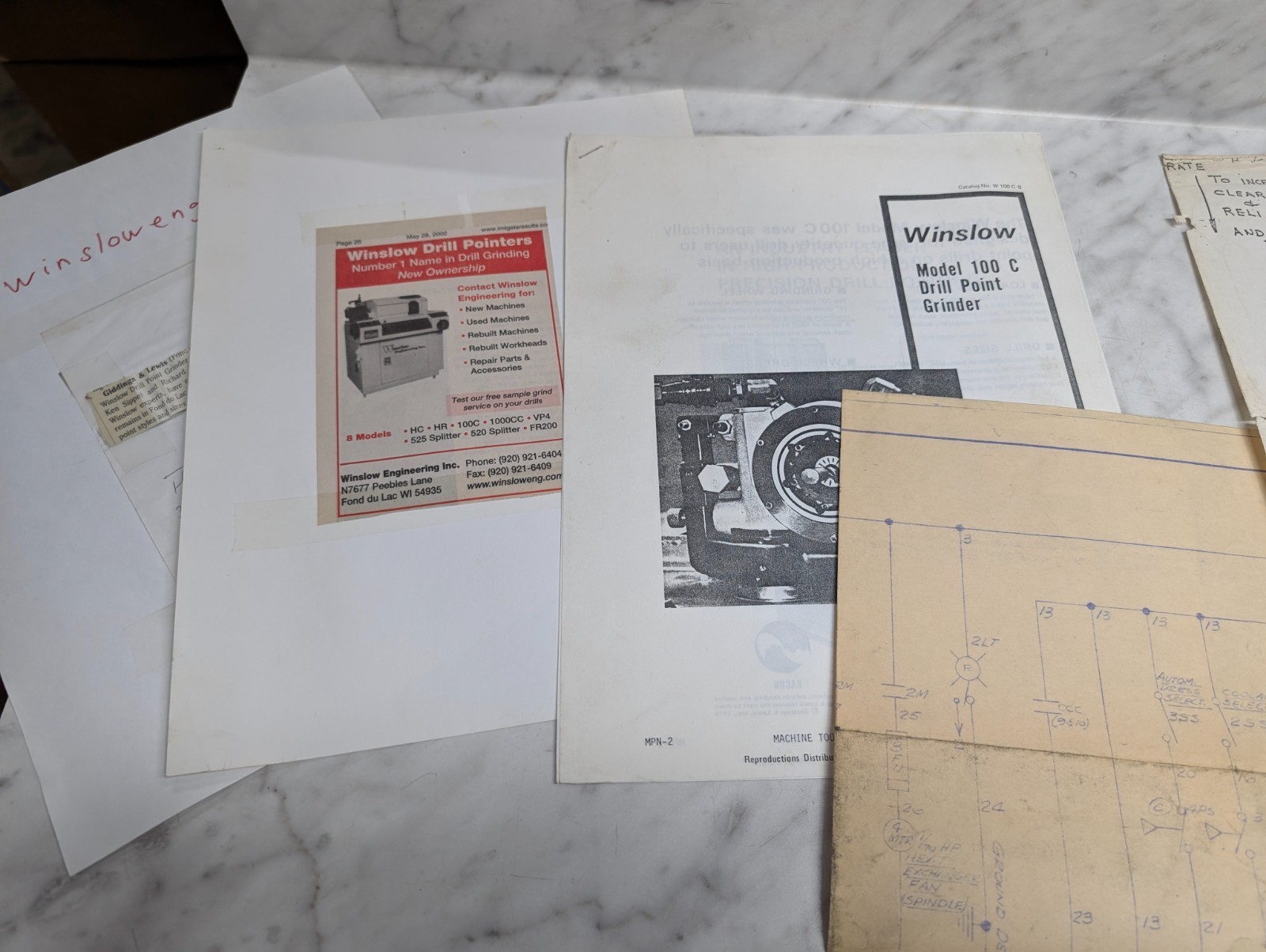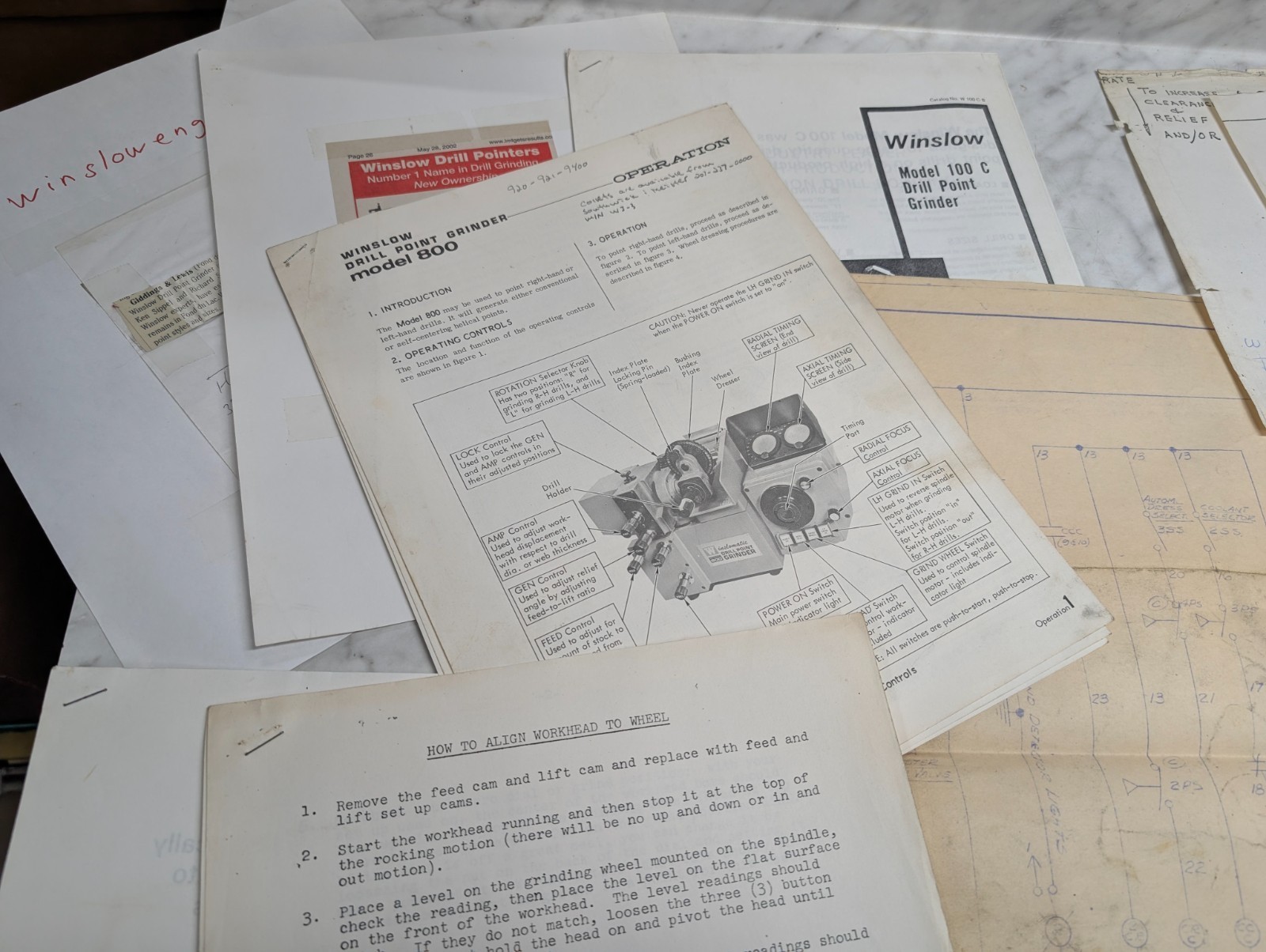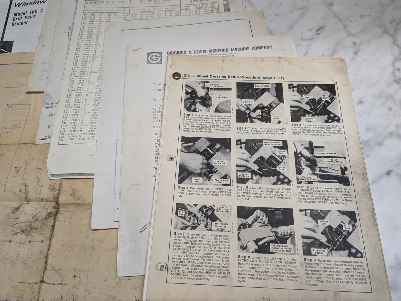 Winslow Drill Point Grinder Information Lot Literature Diagrams