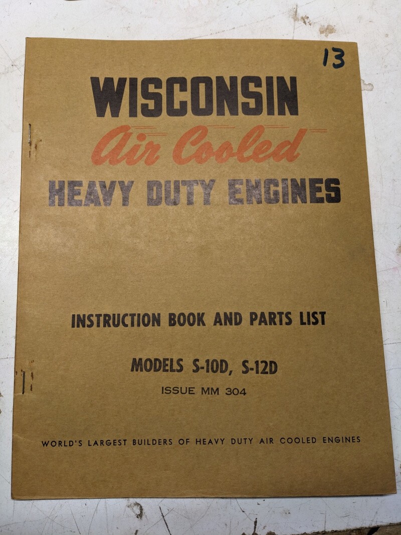 Wisconsin Air Cooled Engine Instruction Book Part List Model S-10D S-12D Mm 304