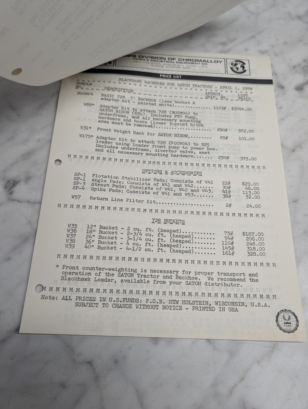 Wisconsin Apps Division Of Chronalloy Blackhawk Price List Parts Sales Catalog