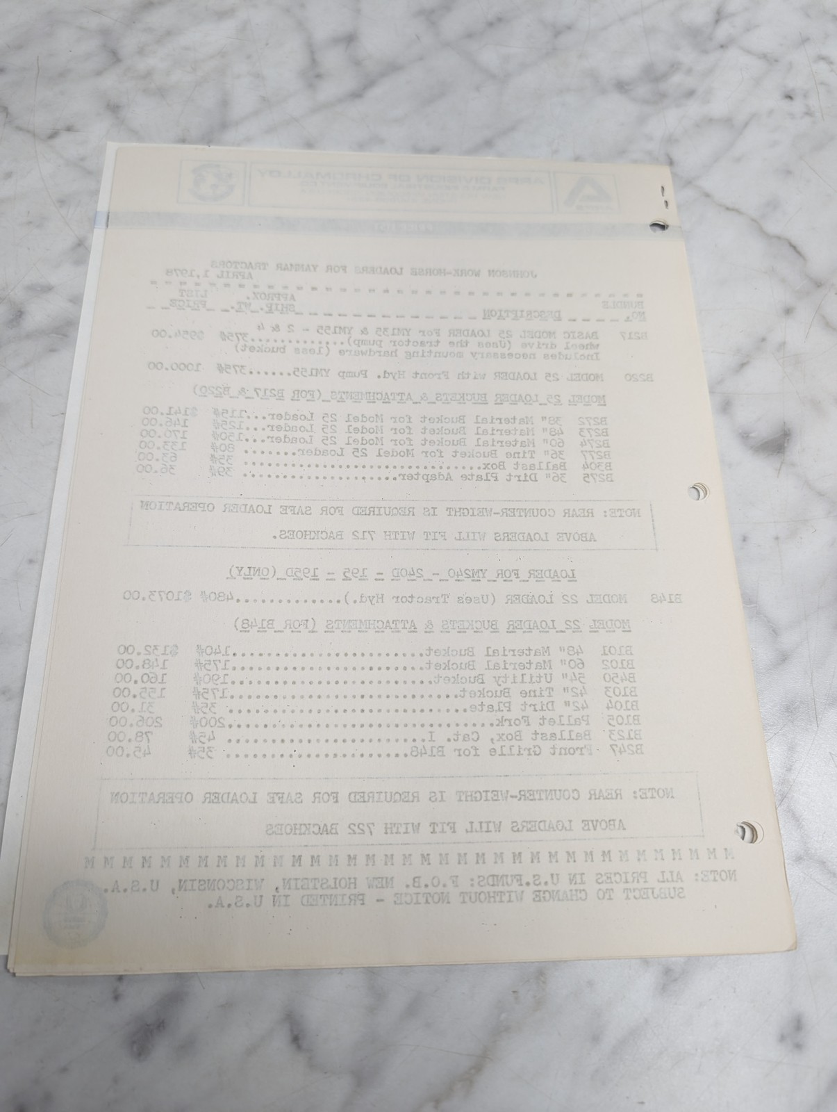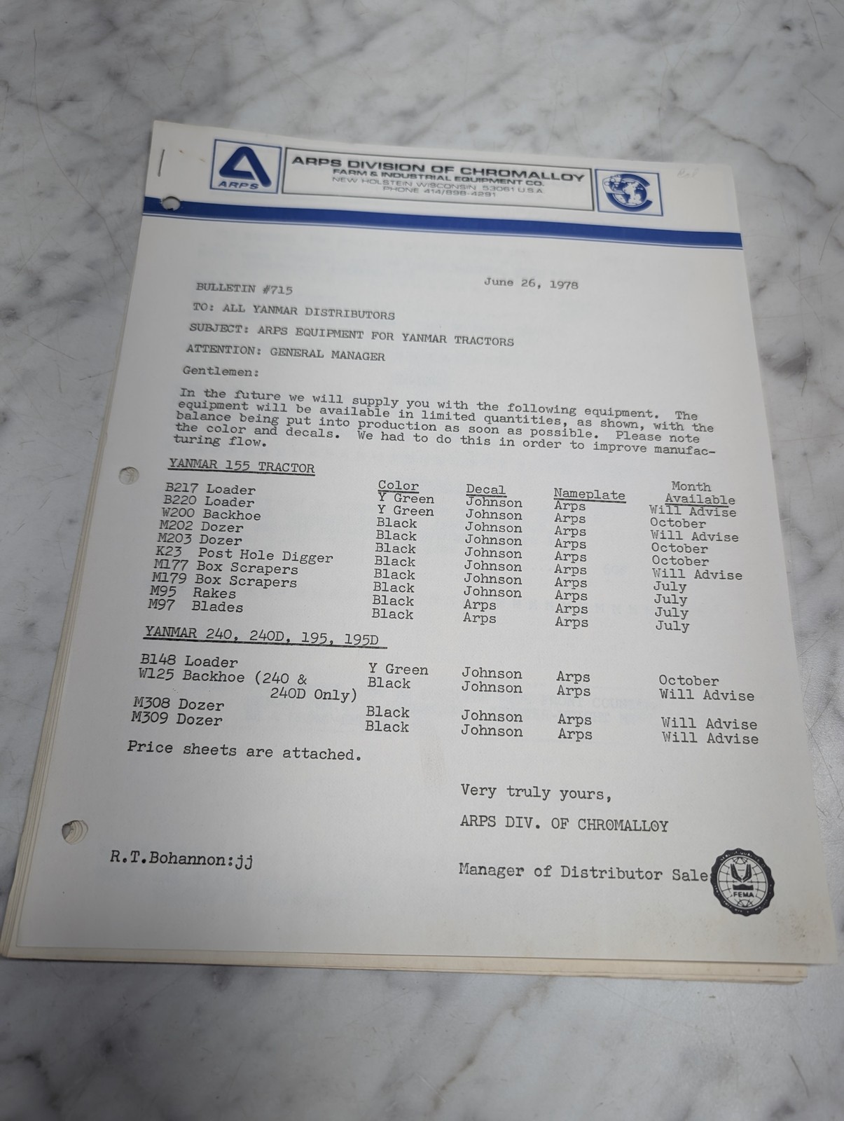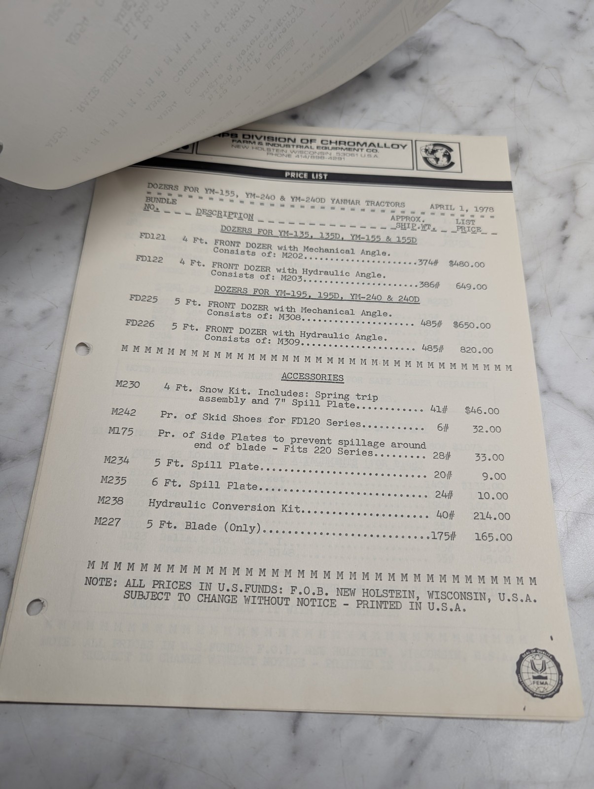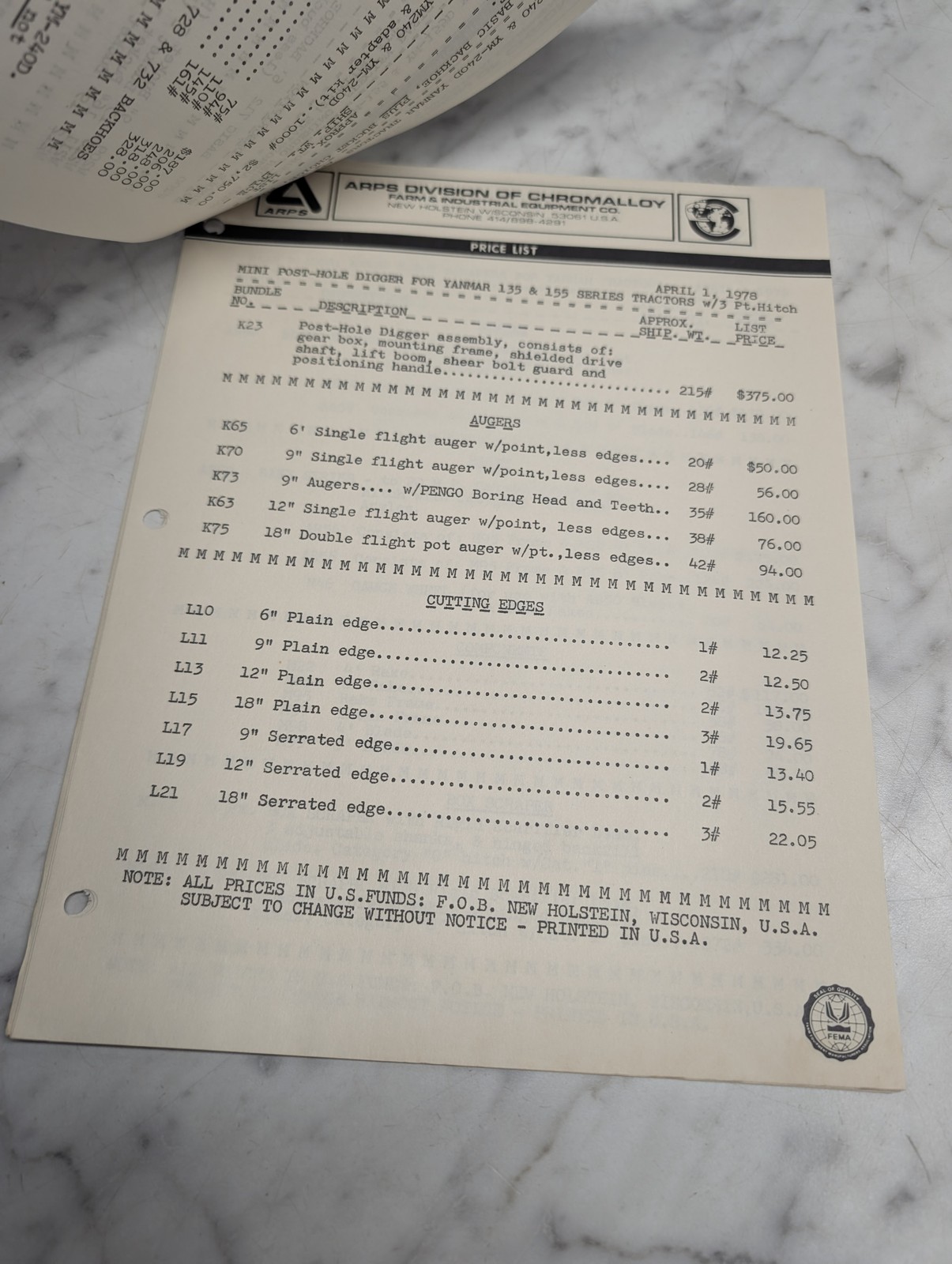 Wisconsin Arps 712 Backhoe Ym 155 155D Yanmar Tractors Price List April 1 1978