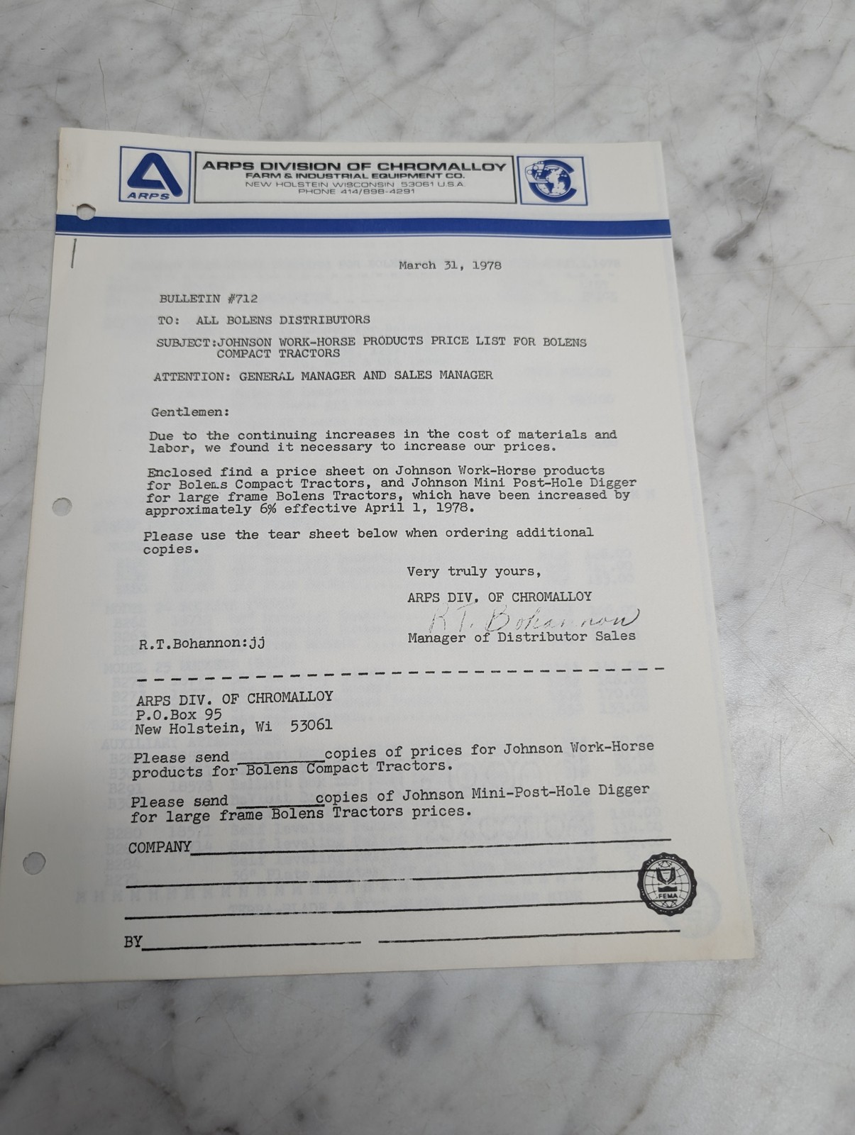 Wisconsin Arps Chromalloy Price List Johnson Work Horse Bolens Compact Tractors