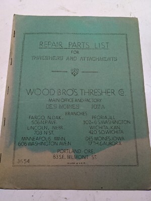 Wood Bros Thresher Co Repair Parts List Attachments Price List 3654