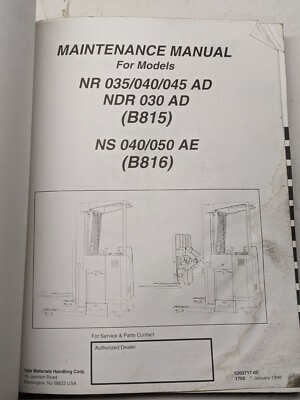 Yale Fork Lift Truck Maintenance Manual Nr Ndr Ns 030 035 040 045 050 Ad Ae 1998