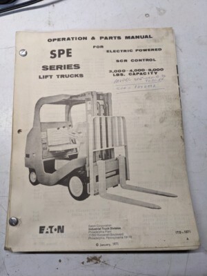 Yale Operation Parts List Book Manual Spe Series 030 040 050 1971 Forklift Truck
