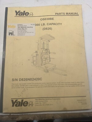 Yale Parts Manual Book List Os030Be D826 Stand Fork Lift Truck 2005 D826N02420C