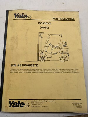 Yale Repair Parts Manual List Book Catalog Fork Lift Truck Gc050Vx A910 2006