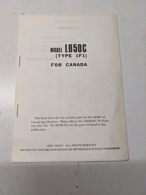 Yamaha Oem Parts List Book Model Lb50C Type 1F1 Suppliment Canada Spec 1976