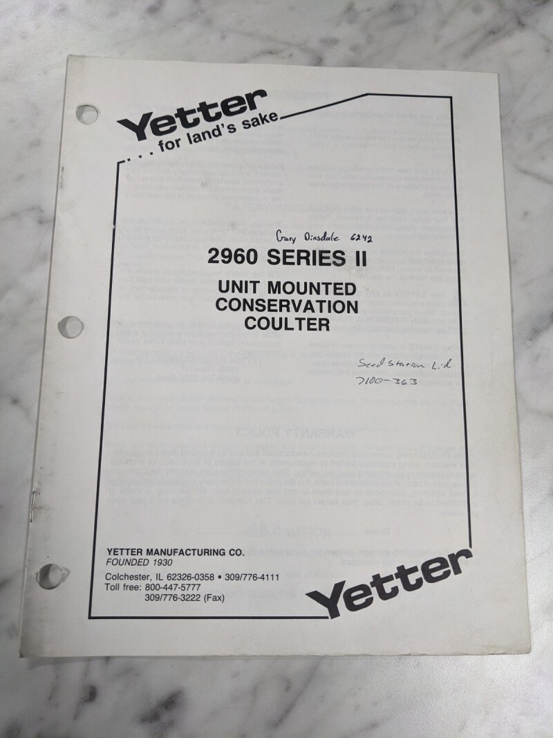 Yetter Operator Service Manual 2960 Series Ii Unit Mounted Conservation Coulter