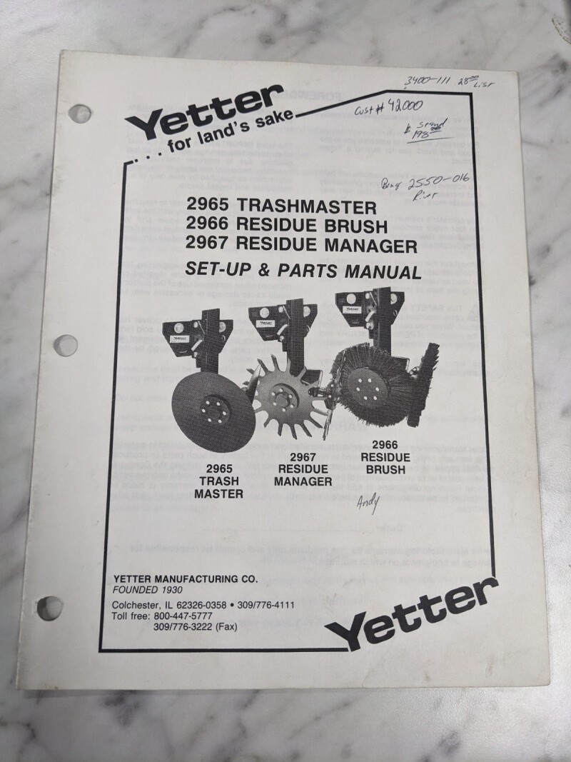 Yetter Operator Service Manual 2965 21966 2967 Trashmaster Manager Parts List