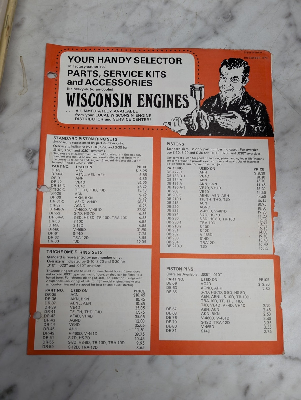 Your Handy Selector Parts Service Kit Accessories Wisconsin Engines Catalog 1974
