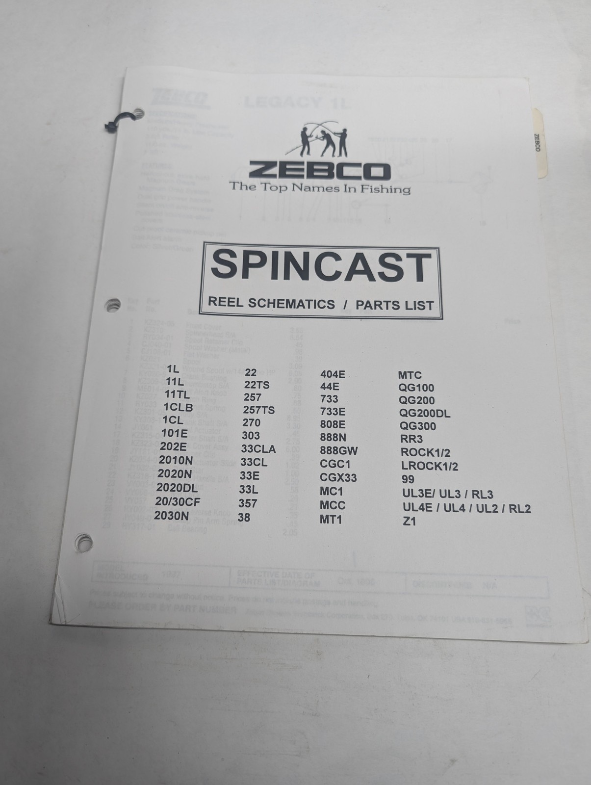 Zebco 1996 Baitcast Fishing Reel Models Schematic Parts List Book Catalog Manual